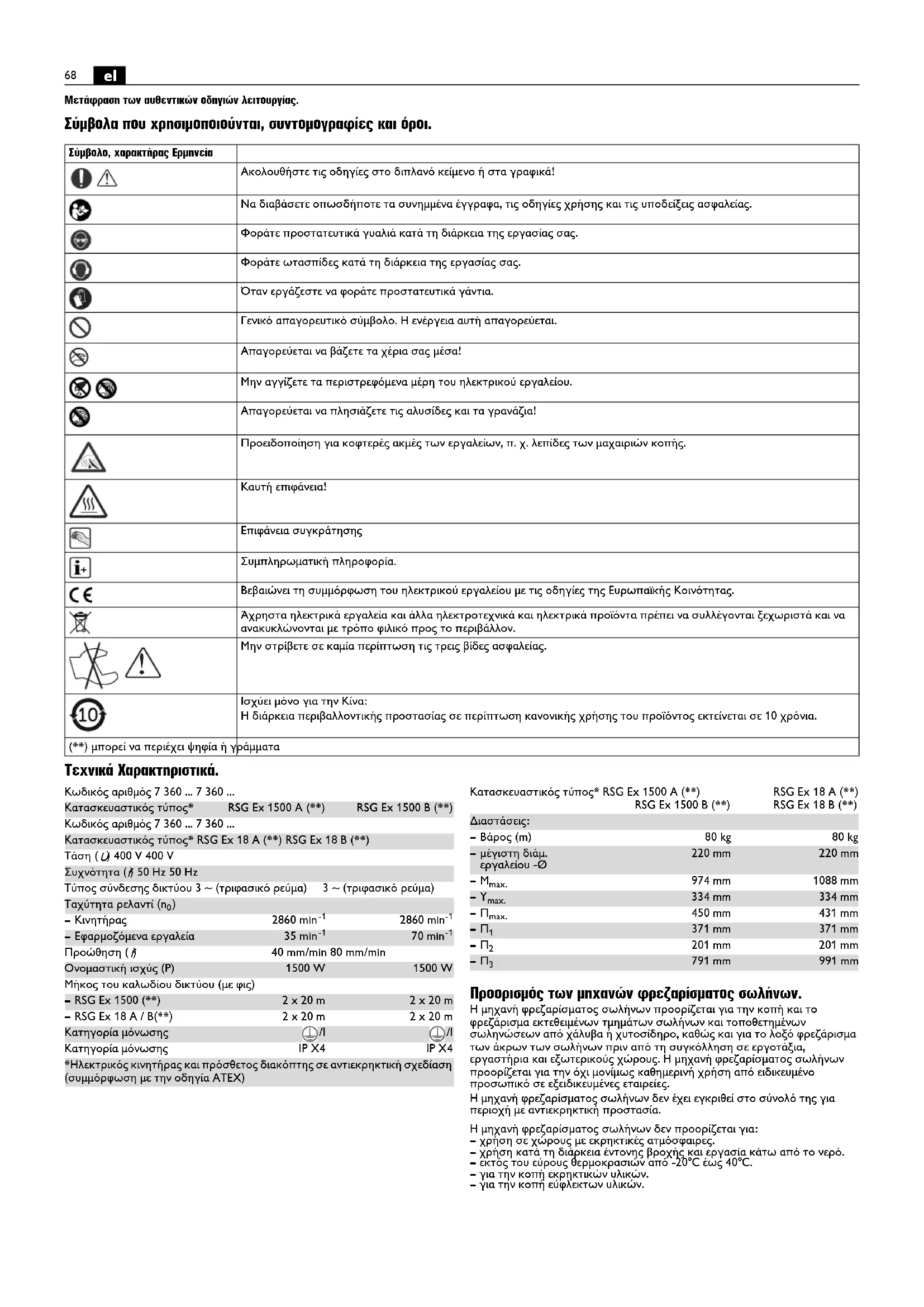 KaTaσκεuaσικός τυτος RSG Ex 1500 A () RSG Ex 1500 B (*)