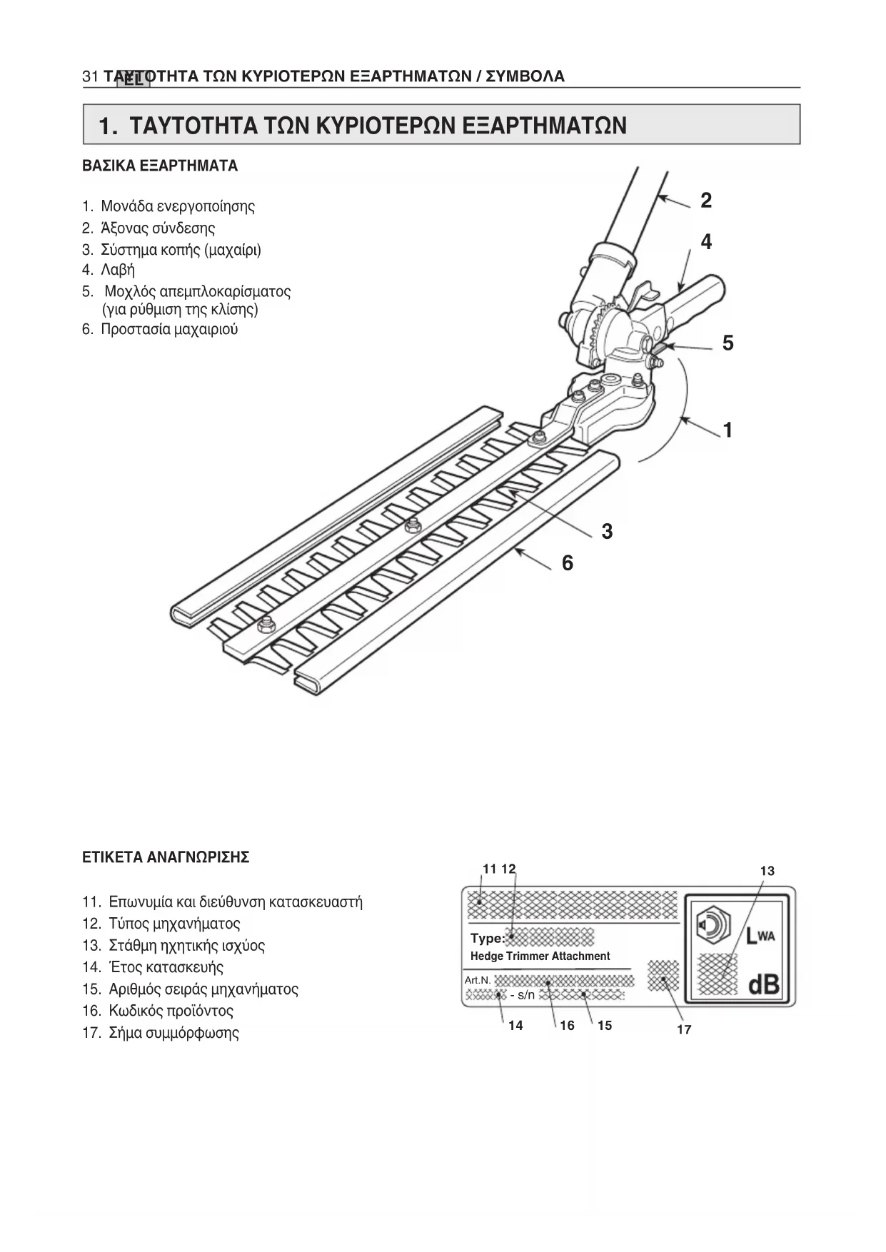 Συσκευή κοπής φράχτη a) Τύπος / Βασικό Μοντέλο c) Αριθμός μητρώου d) Κινητήρας: /