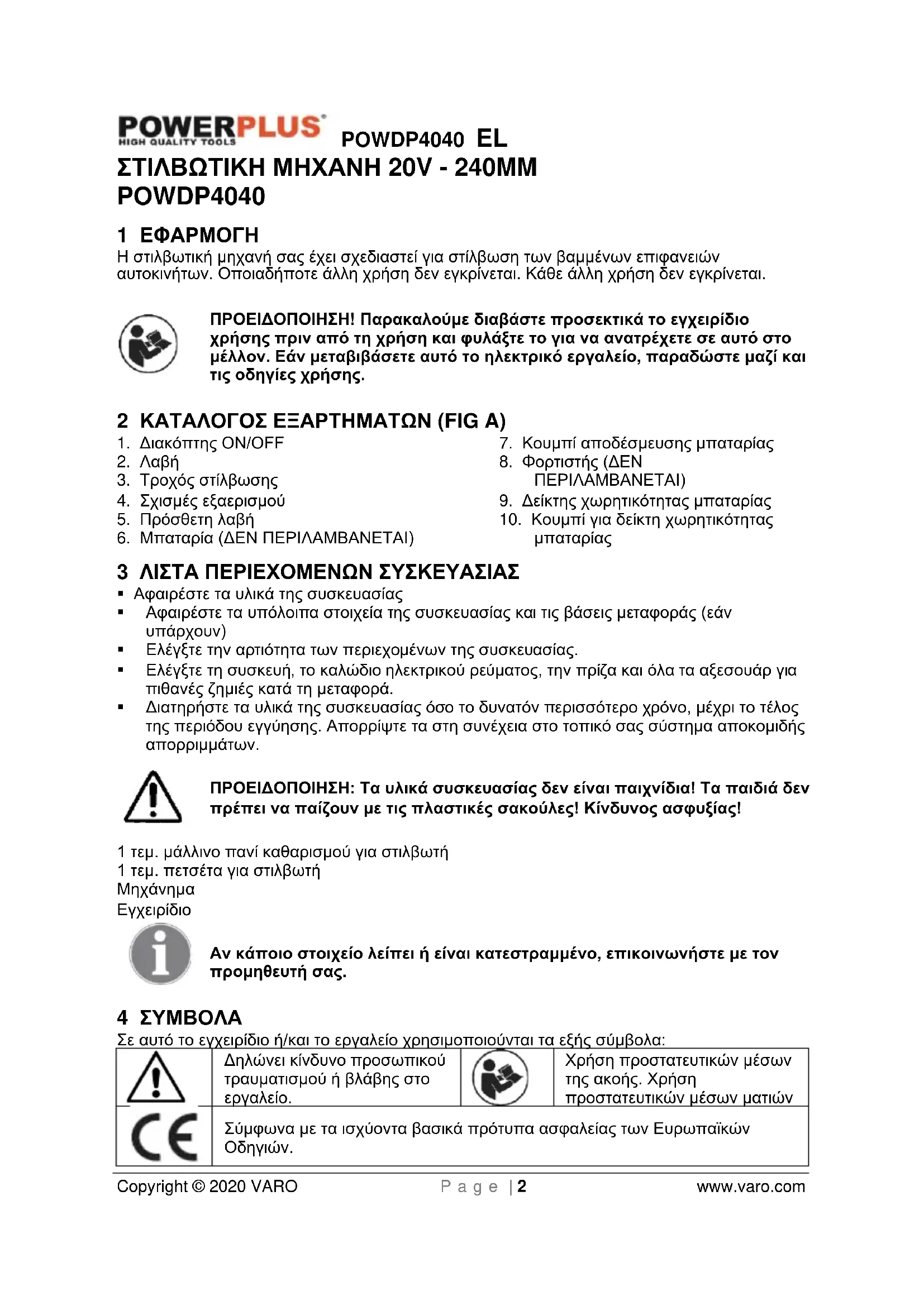 - 15 ΔΉΛΩΣΗ ΣΥΜΜΌΡΦΩΣΗΣ POWDP4040 EL Copyright © 2020 VARO P a g e | 2 www.varo.com p. 10