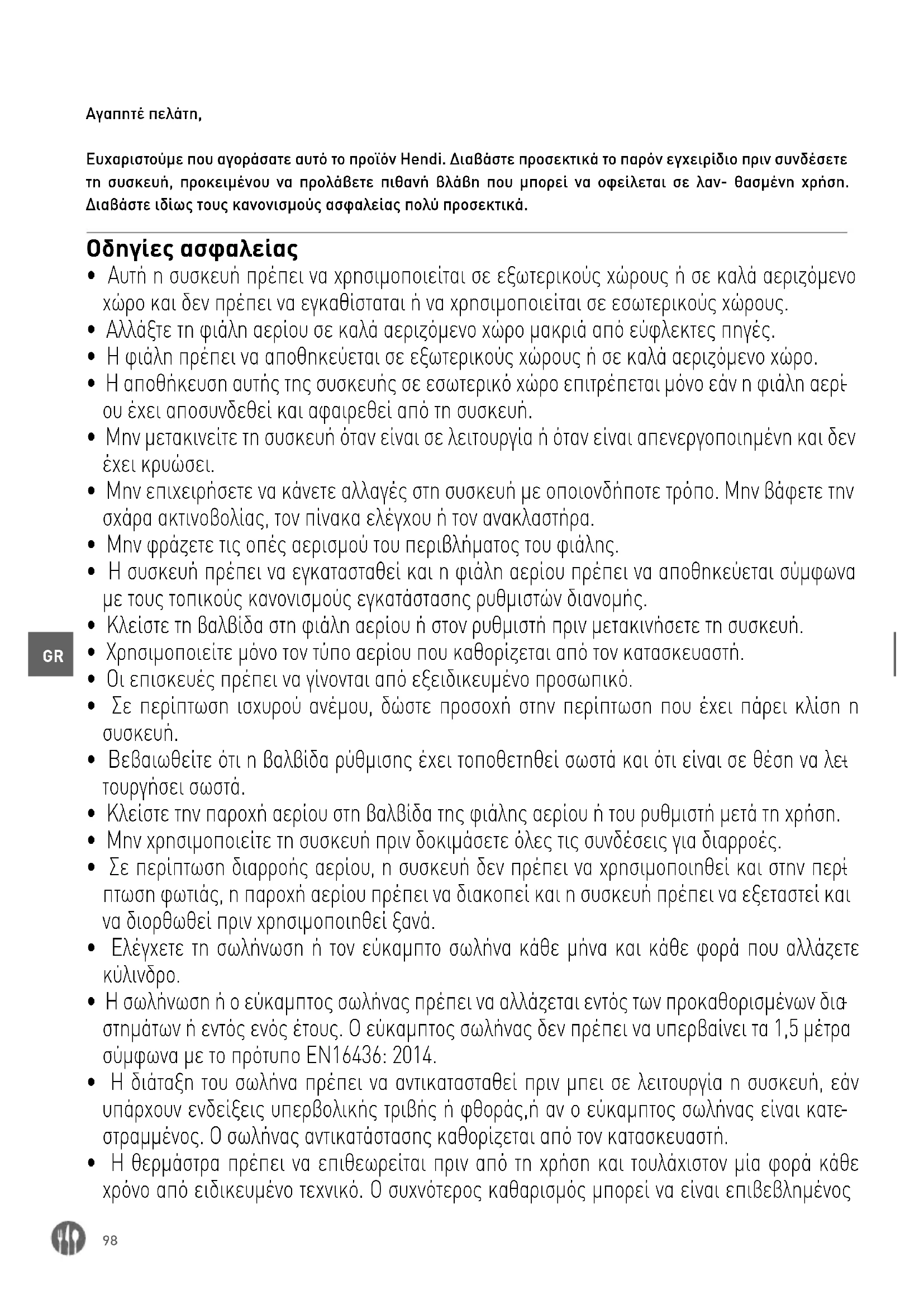 Αγαπητέ πελάτη, Ευχαριστούμε που αγοράσατε αυτό το προϊόν Hendi. Διαβάστε προσεκτικά το παρόν εγχειρίδιο πριν συνδέσετε τη συσκευή, προκειμένου να προλάβετε πιθανή βλάβη που μπορεί να οφείλεται σε λαν- θασμένη χρήση. Διαβάστε ιδίως τους κανονισμούς ασφαλείας πολύ προσεκτικά. Οδηγίες ασφαλείας