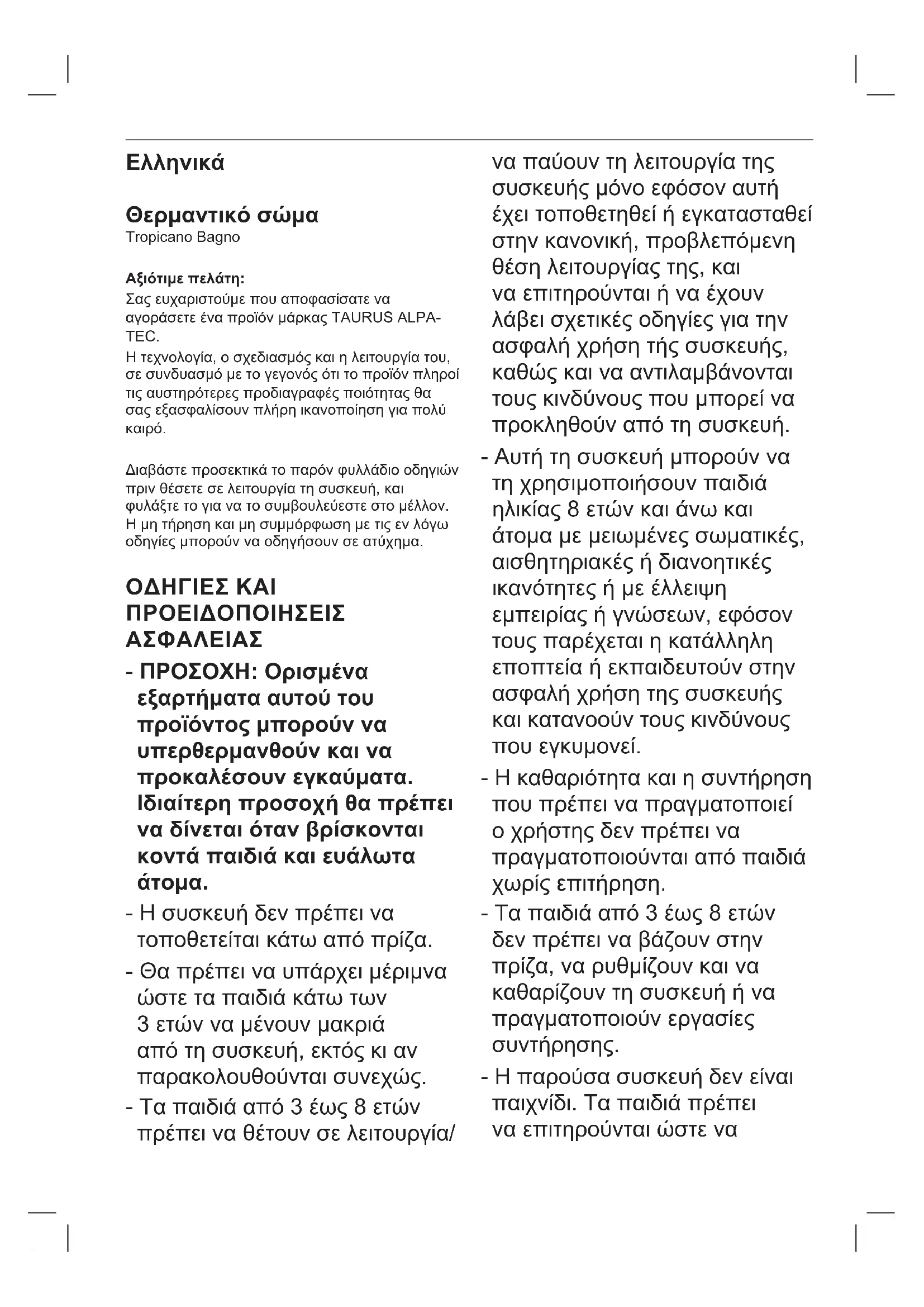 Tropicano Bagno - Θέρμανση TAURUS - Δωρεάν εγχειρίδιο χρήσης