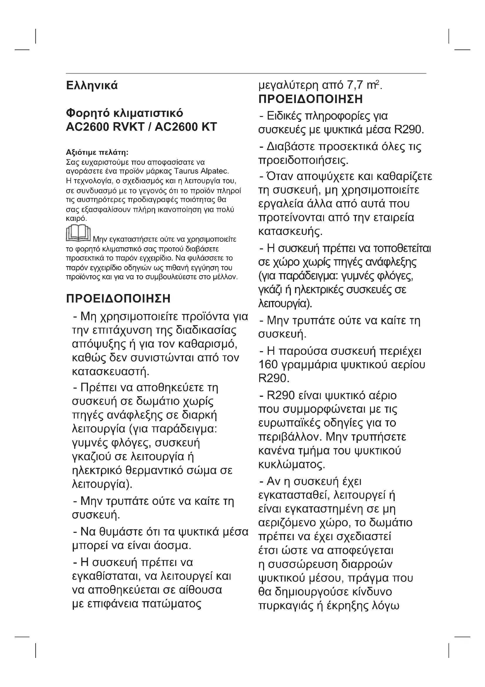 AC 2600 RVKT - Κλιματισμός TAURUS - Δωρεάν εγχειρίδιο χρήσης