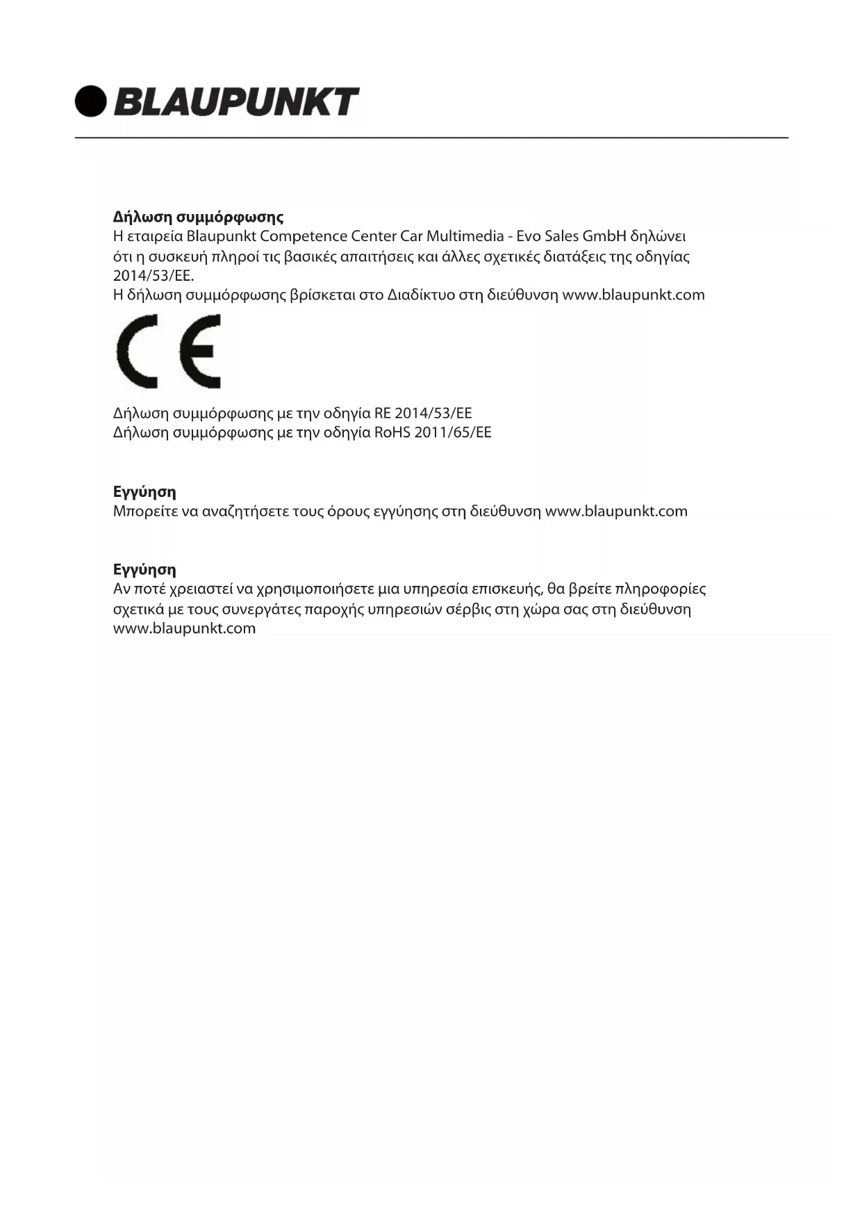 Μπορείτε να αναζητήσετε τους όρους εγγύησης στη διεύθυνση www.blaupunkt.com