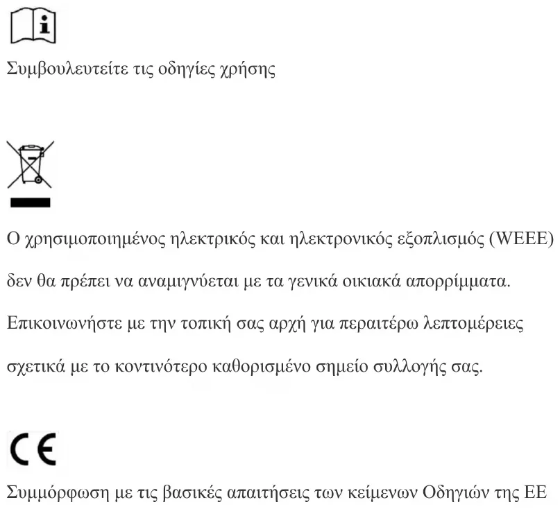 Συμμόρφωση με τις βασικές απαιτήσεις των κείμενων Οδηγιών της ΕΕΕξήγηση εικονιδίων ασφαλείας