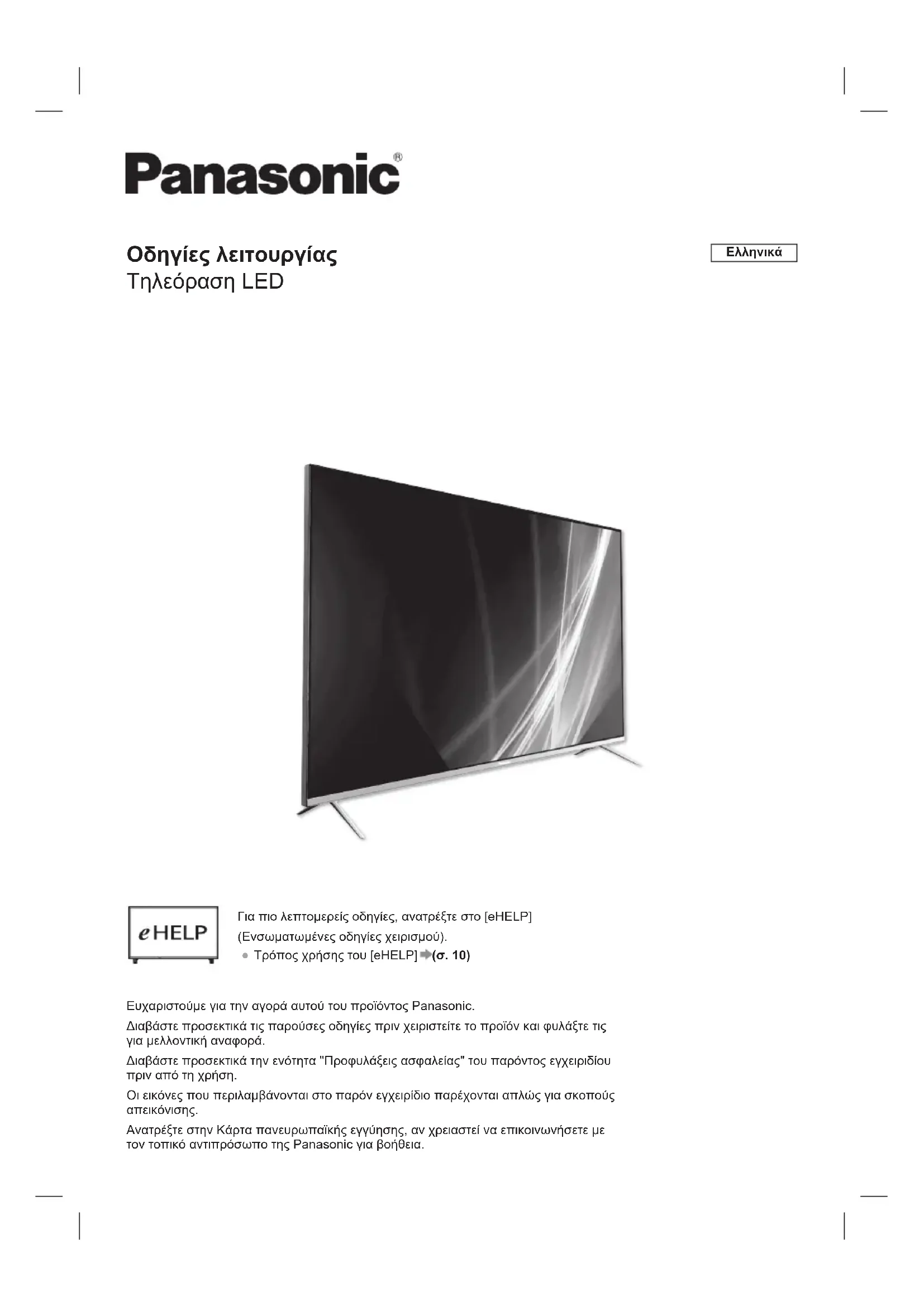 Με τη σωστή τους απόρριψη, θα βοηθήσετε στην εξοικονόμηση πολύτιμων πόρων και θα αποτρέψετε πιθανές αρνητικές συνέπειες στην ανθρώπινη υγεία και το περιβάλλον. Για περισσότερες πληροφορίες σχετικά με τη συλλογή και την ανακύκλωση, επικοινωνήστε με την τοπική δημοτική αρχή. Ενδέχεται να υπάρχουν κυρώσεις για την εσφαλμένη απόρριψη αυτών των αντικειμένων, σύμφωνα με τη νομοθεσία της χώρας σας. Σημείωση για το σύμβολο μπαταρίας (κάτω σύμβολο): Το σύμβολο μπορεί να χρησιμοποιηθεί σε συνδυασμό με ένα χημικό σύμβολο. Σε αυτήν την περίπτωση, συμμορφώνεται με την απαίτηση που ορίζεται στην Οδηγία για το σχετικό χημικό στοιχείο.Bruksanvisningar LED-TV Svenska Tack för att du köpt denna Panasonic-produkt. Läs igenom de här anvisningarna noggrant innan du använder produkten och behåll dem för framtida referens. Läs noggrant igenom avsnitten ”Säkerhetsföreskrifter” i den här handboken före användning. Bilderna som visas i den här handboken är endast i illustrativt syfte. Se det paneuropeiska garantikortet om du behöver kontakta din lokala Panasonic- återförsäljare för att få hjälp. Mer detaljerade instruktioner finns i [eHELP] (Inbyggda bruksanvisningar).