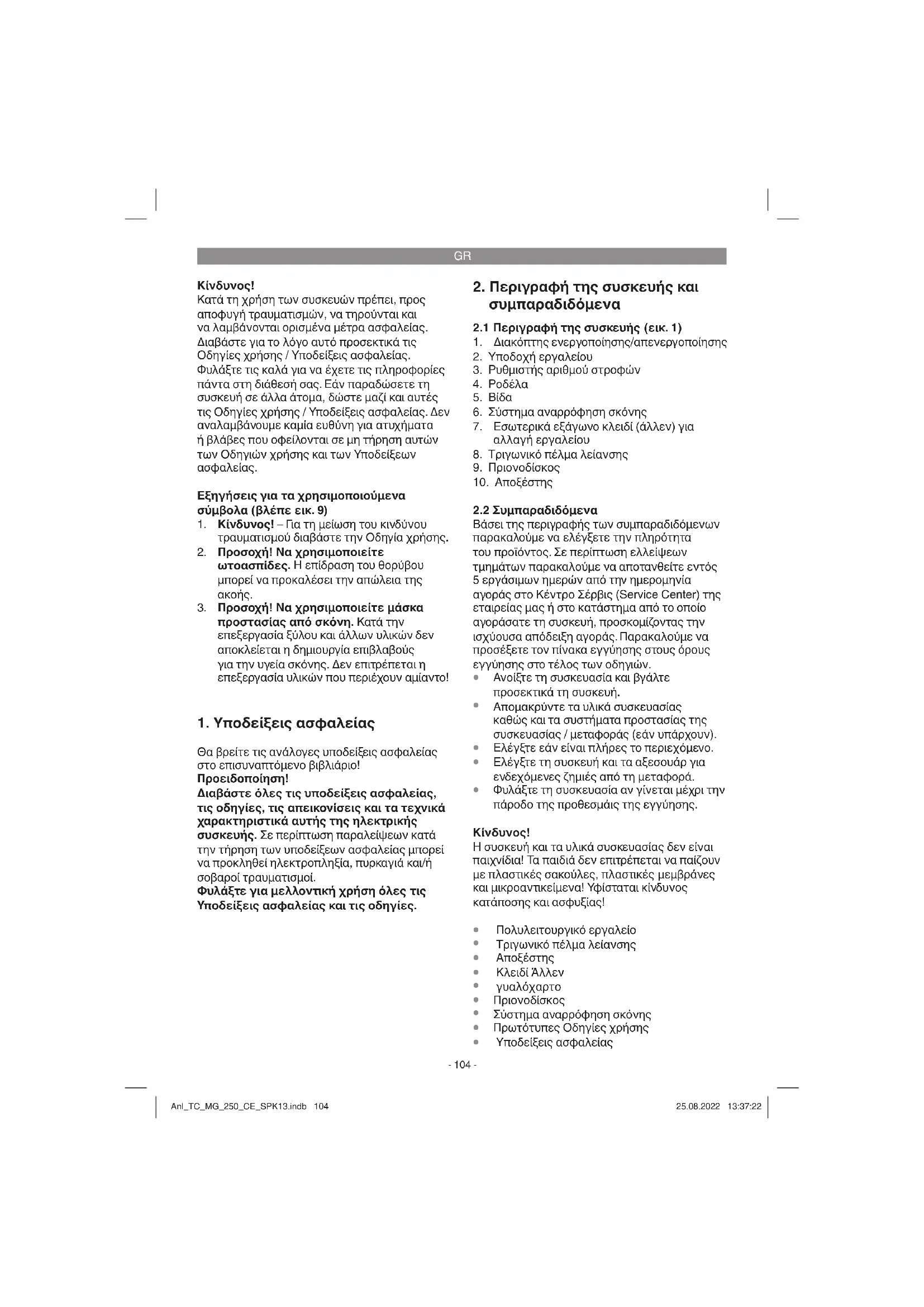 Να χρησιμοποιε΄τιε μόνο κατάλληλα εργαλεία σε άψογη κατάσταση. Anl_TC_MG_250_CE_SPK13.indb 106Anl_TC_MG_250_CE_SPK13.indb 106 25.08.2022 13:37:2325.08.2022 13:37:23GR