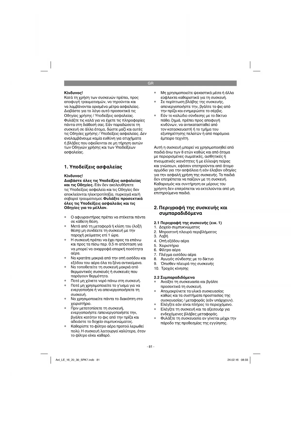 Να αποφεύγονται τα ανοικτά παράθυρα, οι ανοικτές πόρτες, συχνή είσοδος και έξοδος Anl_LE_16_20_30_SPK7.indb 83Anl_LE_16_20_30_SPK7.indb 83 24.02.16 08:3324.02.16 08:33GR