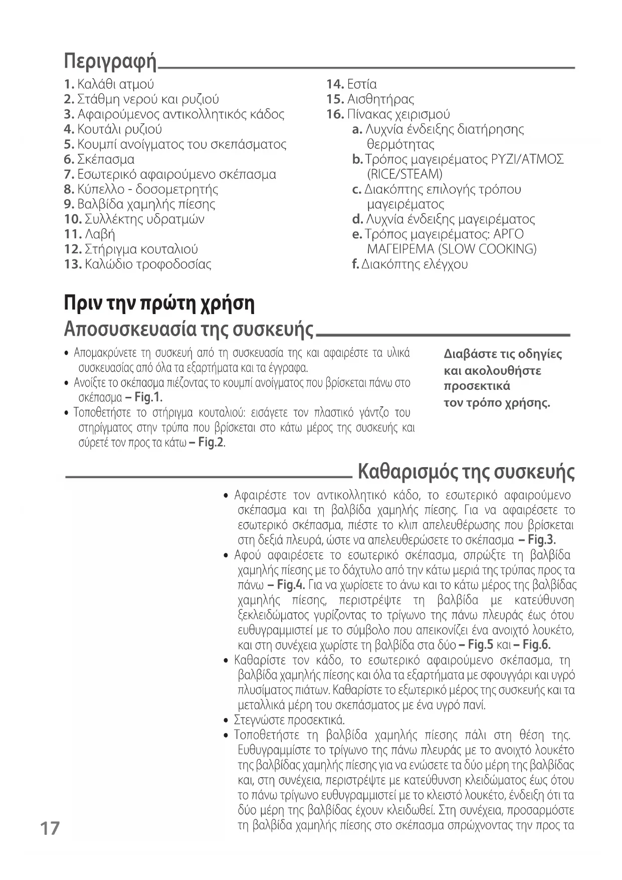 b. Τρόπος μαγειρέματος ΡΥΖΙ/ΑΤΜΟΣ (RICE/STEAM) c. Διακόπτης επιλογής τρόπου μαγειρέματος d. Λυχνία ένδειξης μαγειρέματος e. Τρόπος μαγειρέματος: ΑΡΓΟ ΜΑΓΕΙΡΕΜΑ (SLOW COOKING) f. Διακόπτης ελέγχου TEFAL781-3in1_NC00111822_Mise en page 1 26/04/12 18:28 Page17EN