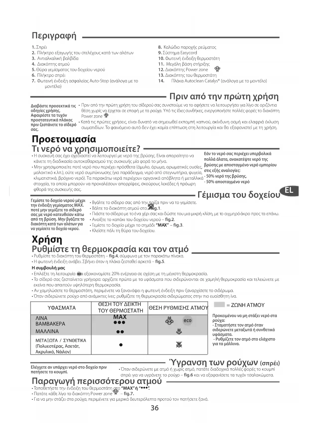 - απόδοση της συσκευής σας για πολλά χρόνια. Ασφάλεια Αυτόματης Λειτουργίας (ανάλογα με το μοντέλο)