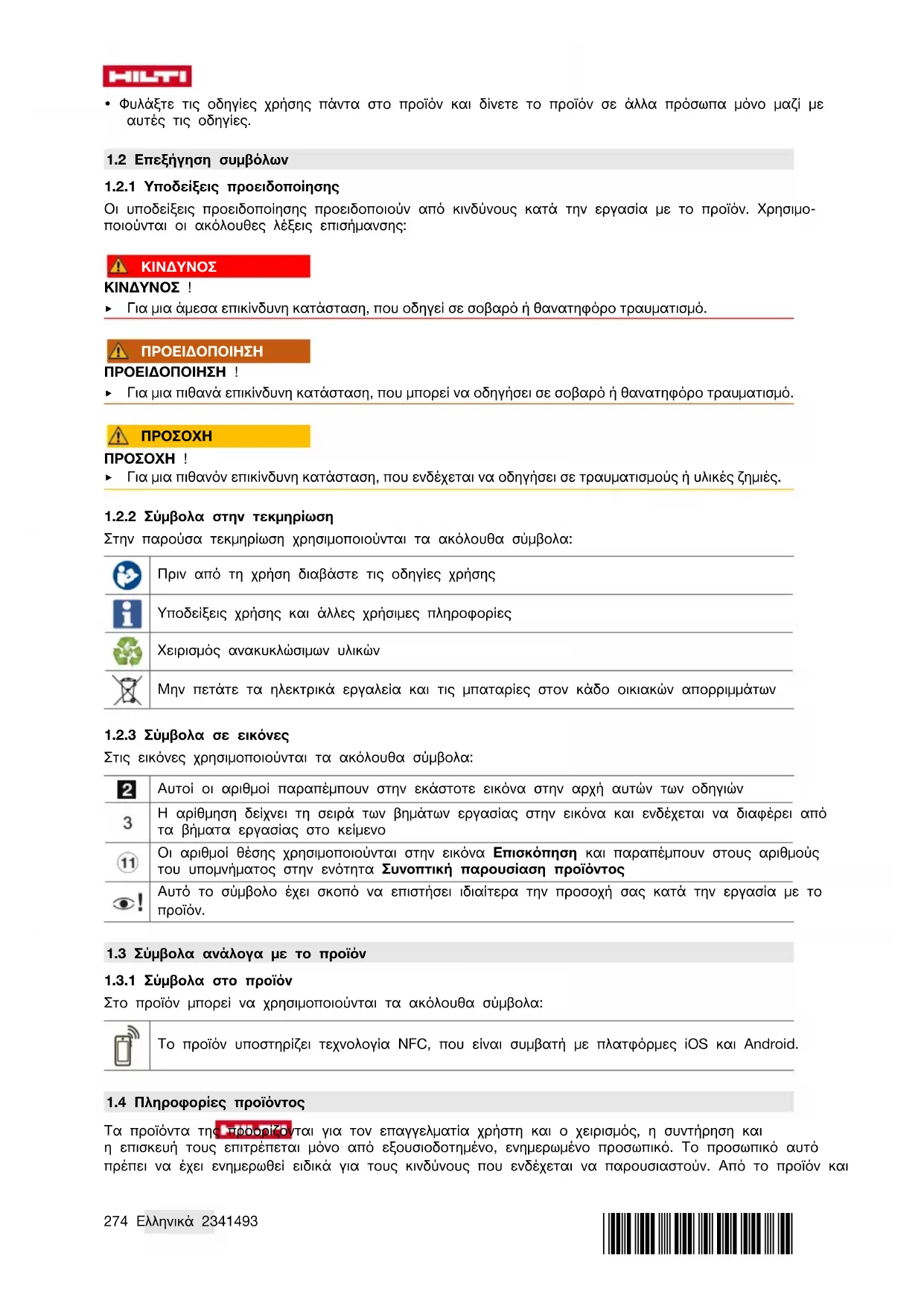 1.3 Σύμβολα ανάλογα με το προϊόν