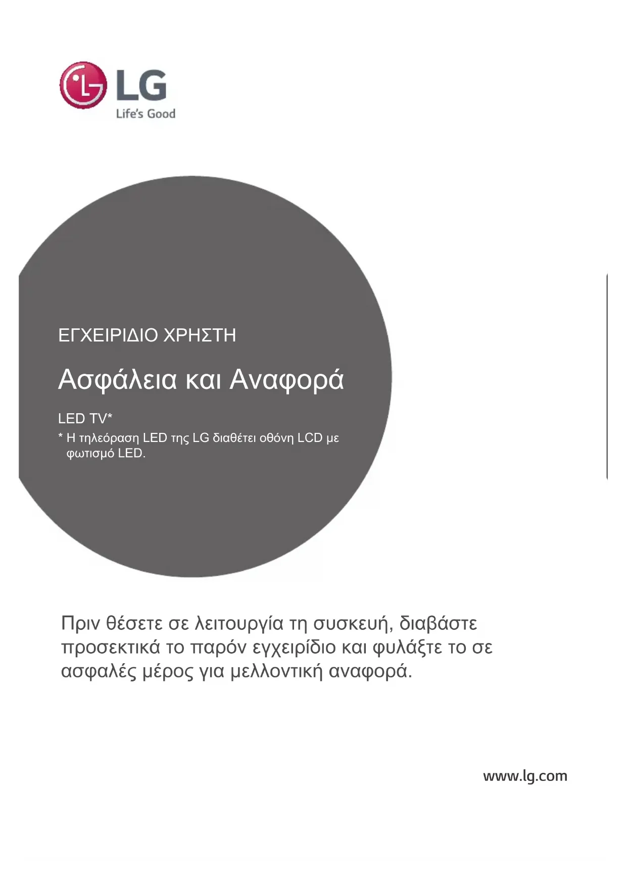 1Modell- und Seriennummer des TV-Gerätes benden sich auf der Rückseite Notieren Sie diese Angaben unten (für den Fall einer Reparatur). MODELL SERIENNUMMERΠριν θέσετε σε λειτουργία τη συσκευή, διαβάστε προσεκτικά το παρόν εγχειρίδιο και φυλάξτε το σε ασφαλές μέρος για μελλοντική αναφορά. Ασφάλεια και Αναφορά ΕΓΧΕΙΡΙΔΙΟ ΧΡΗΣΤΗ www.lg.com LED TV*