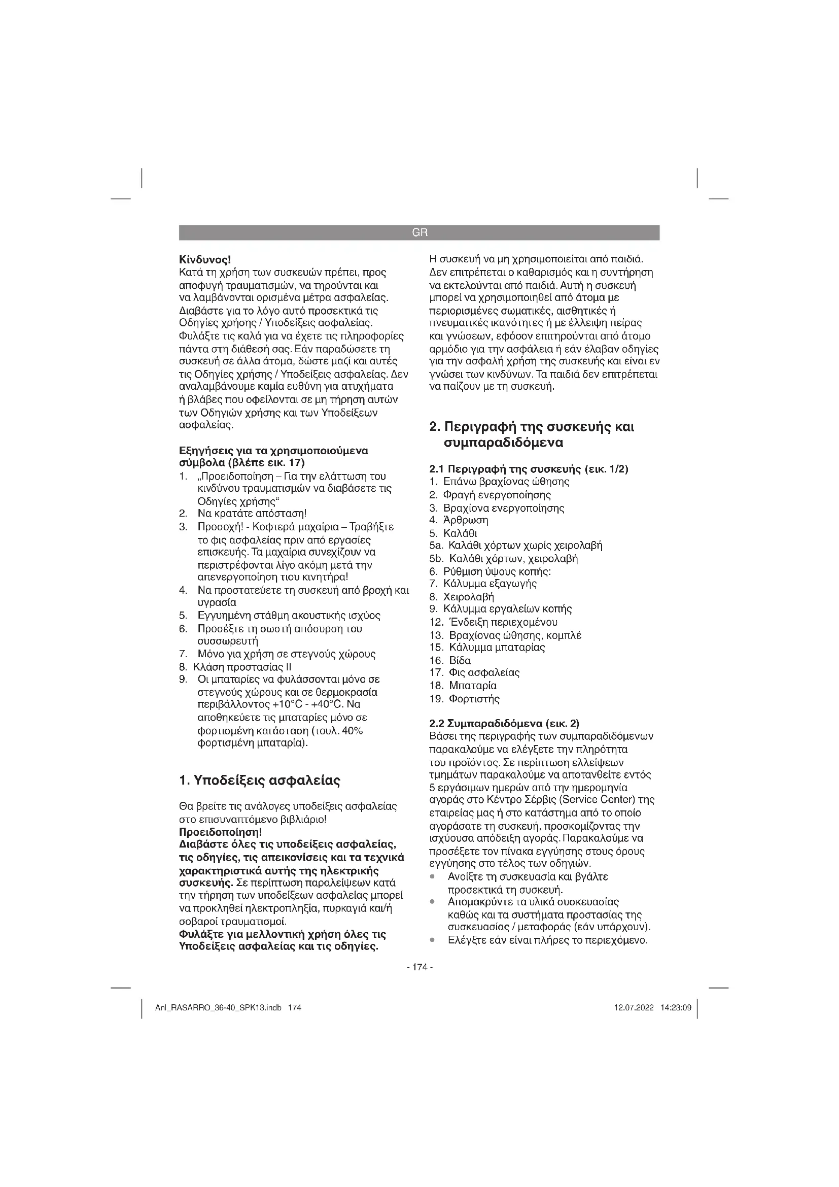 Ελέγξτε εάν είναι πλήρες το περιεχόμενο. Anl_RASARRO_36-40_SPK13.indb 174Anl_RASARRO_36-40_SPK13.indb 174 12.07.2022 14:23:0912.07.2022 14:23:09GR