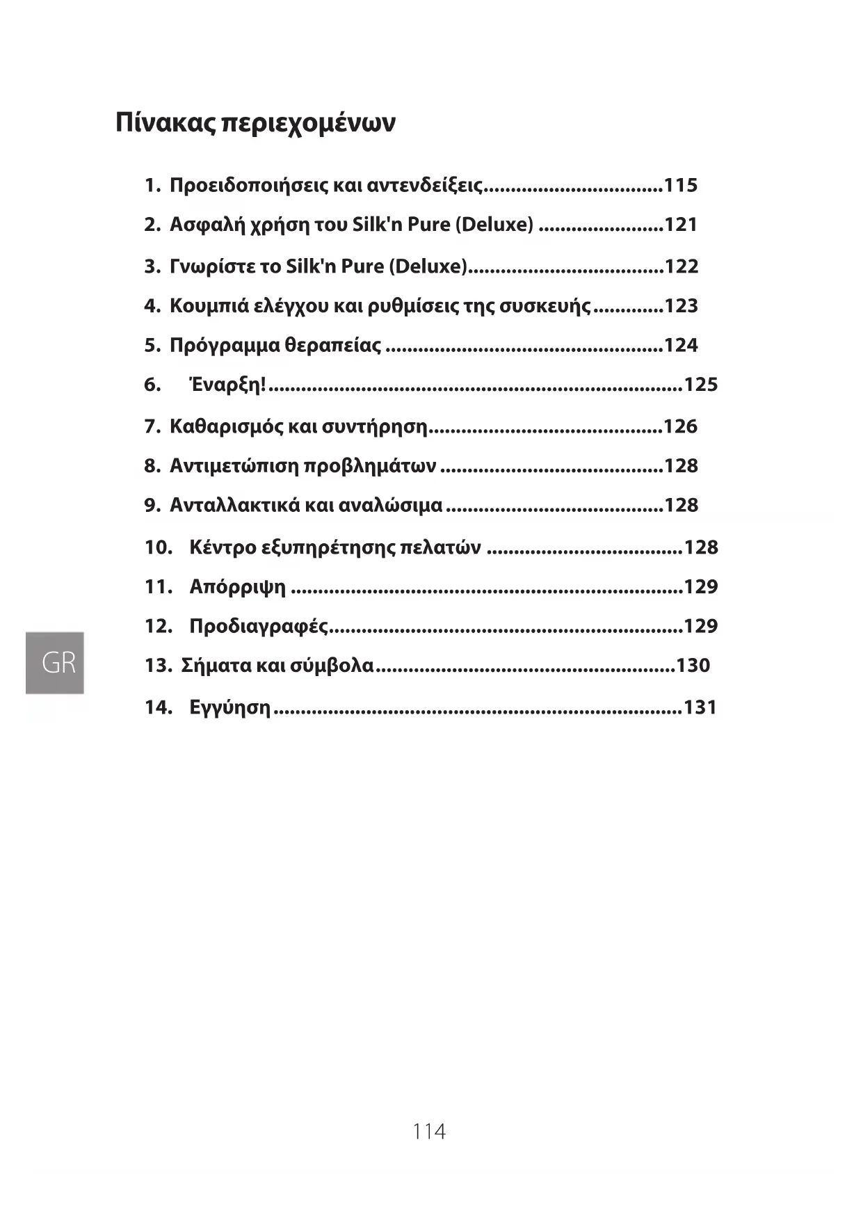 2. Ασφαλή χρήση του Silk'n Pure (Deluxe) .......................121