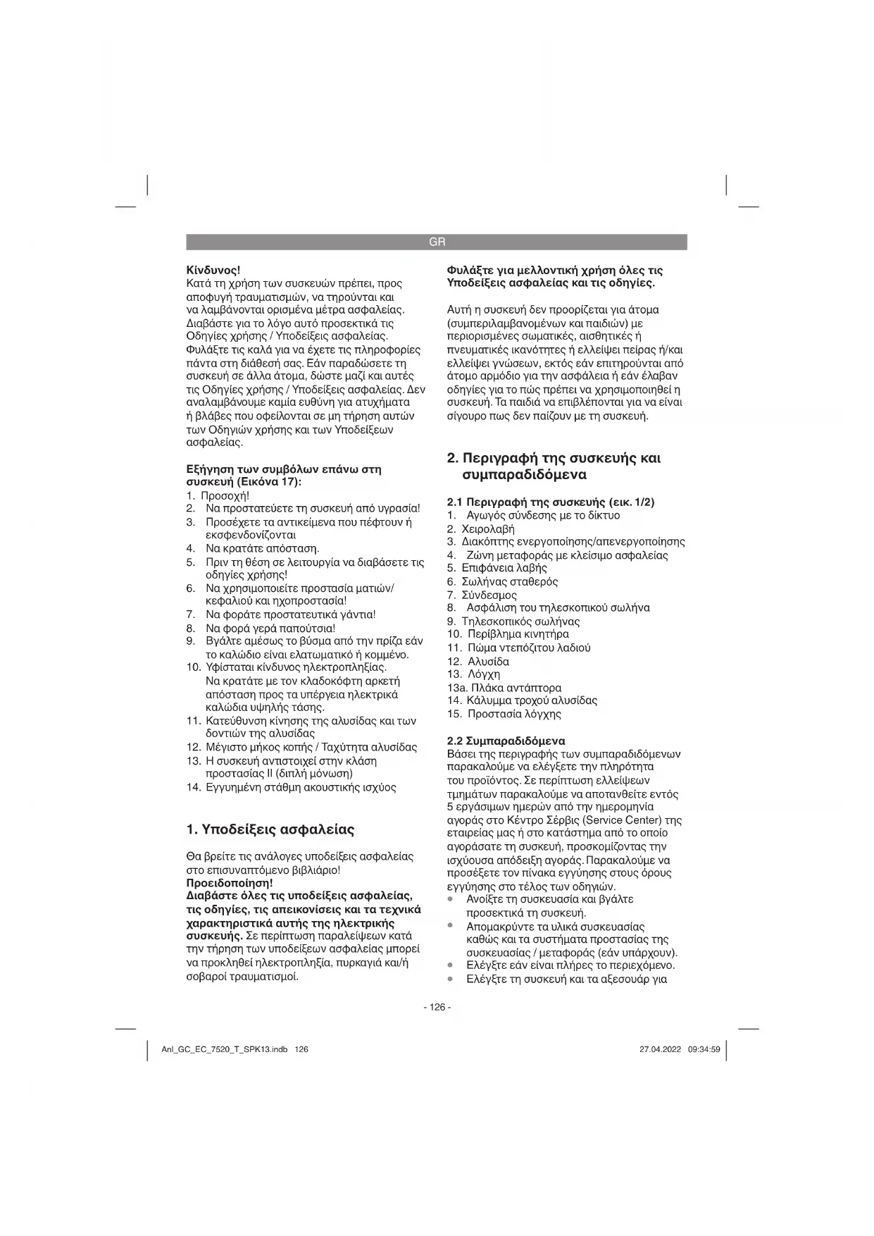 Οι αναφερόμενες συνολικές τιμές μετάδοσης δόνησης και οι τιμές εκπομπής θορύβου μπορούν να χρησιμοποιηθούν για προσωρινή εκτίμηση της σχετικής επιβάρυνσης. Anl_GC_EC_7520_T_SPK13.indb 127Anl_GC_EC_7520_T_SPK13.indb 127 27.04.2022 09:35:0027.04.2022 09:35:00GR