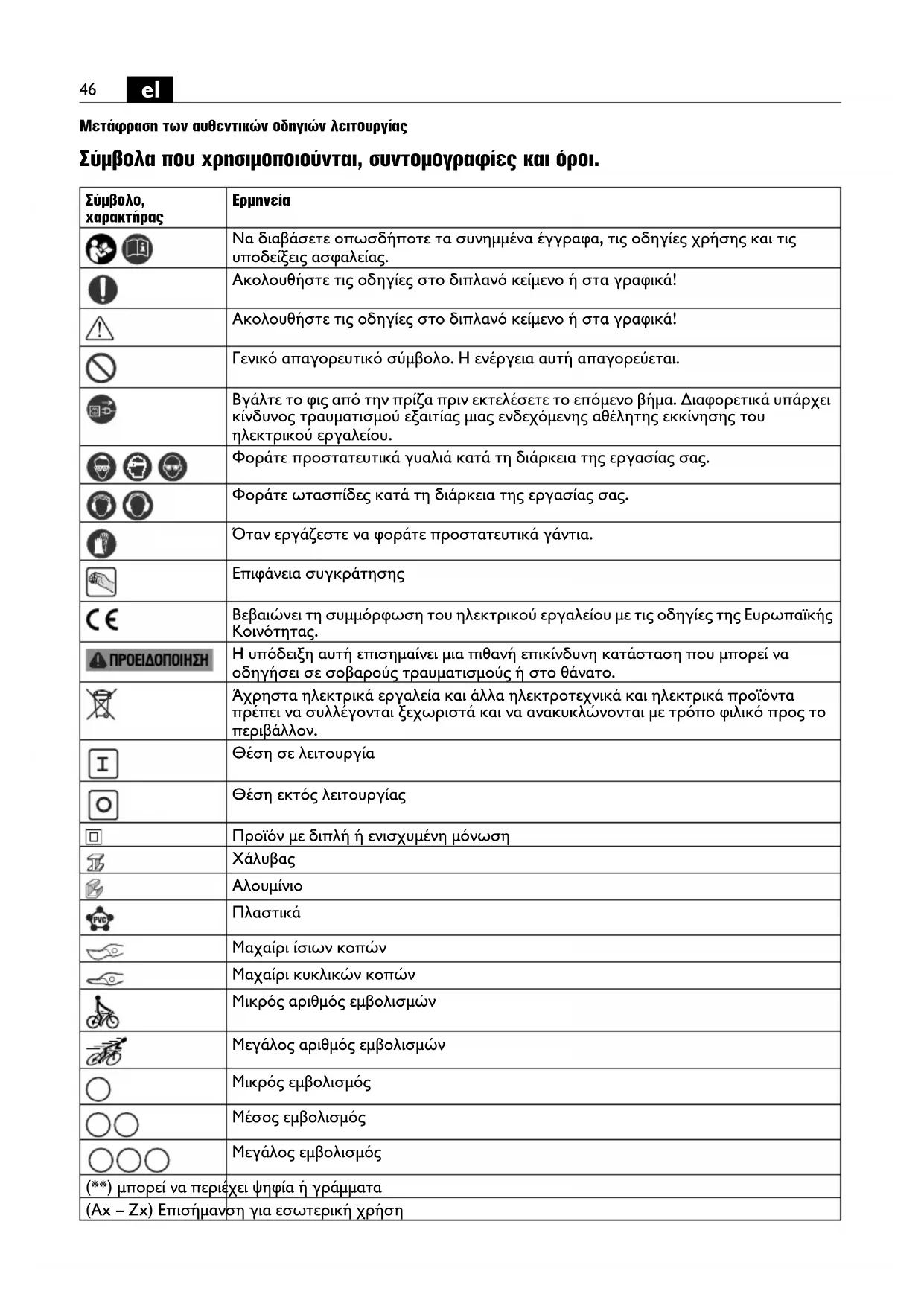 Μετάφραση των αυθεντικών οδηγιών λειτουργίας Σύμβολα που χρησιμοποιούνται, συντομογραφίες και όροι.