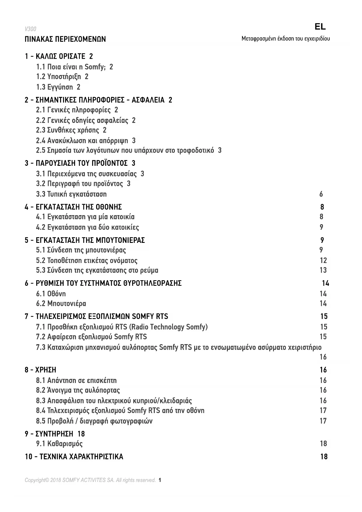 Μεταφρασμένη έκδοση του εγχειριδίου2 Copyright © 2018 SOMFY ACTIVITES SA. All rights reserved. V300
