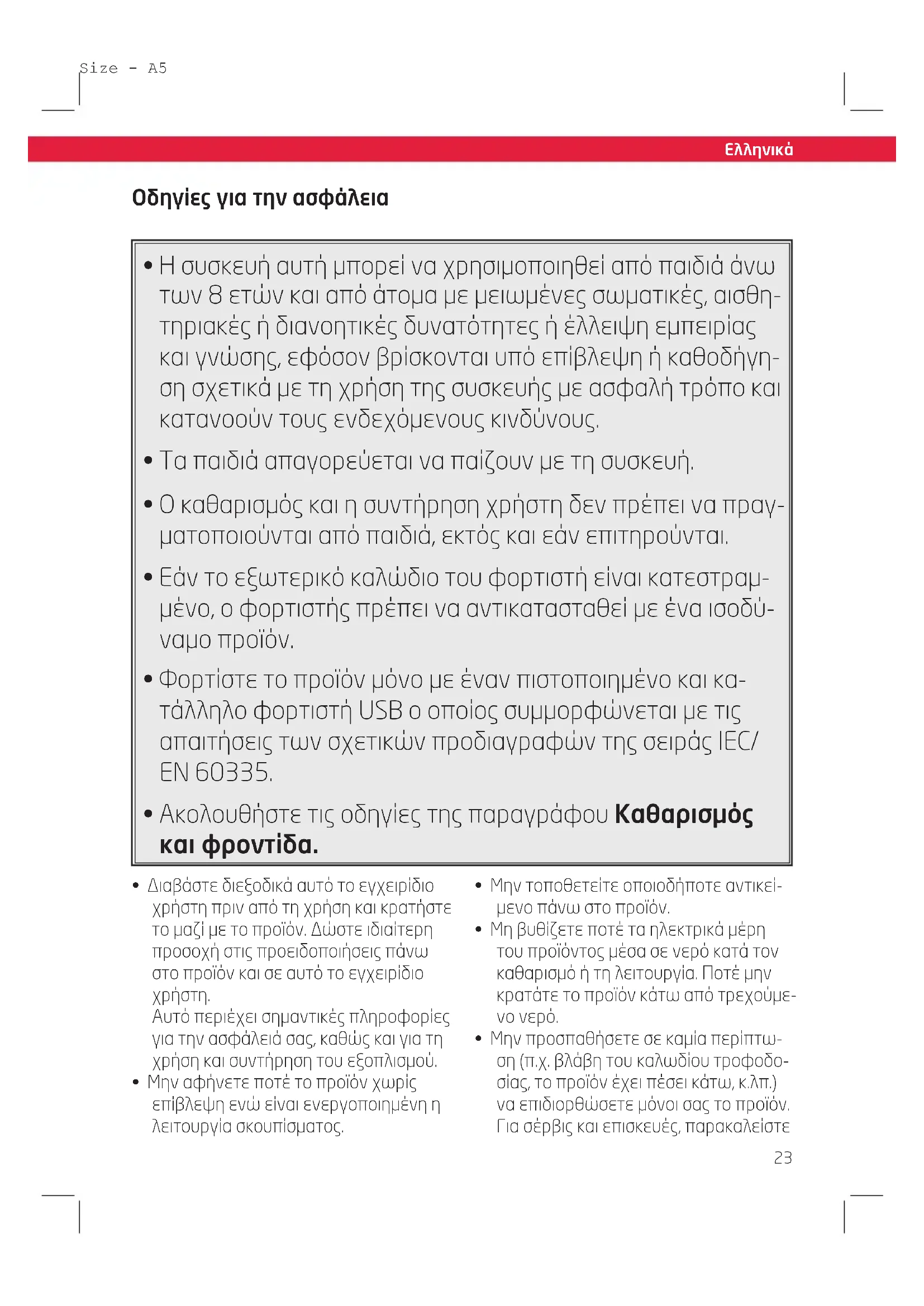 Size - A5 Size - A5 Οδηγίες για την ασφάλεια να συμβουλευτείτε έναν εξουσιοδοτη- μένο αντιπρόσωπο του σέρβις.