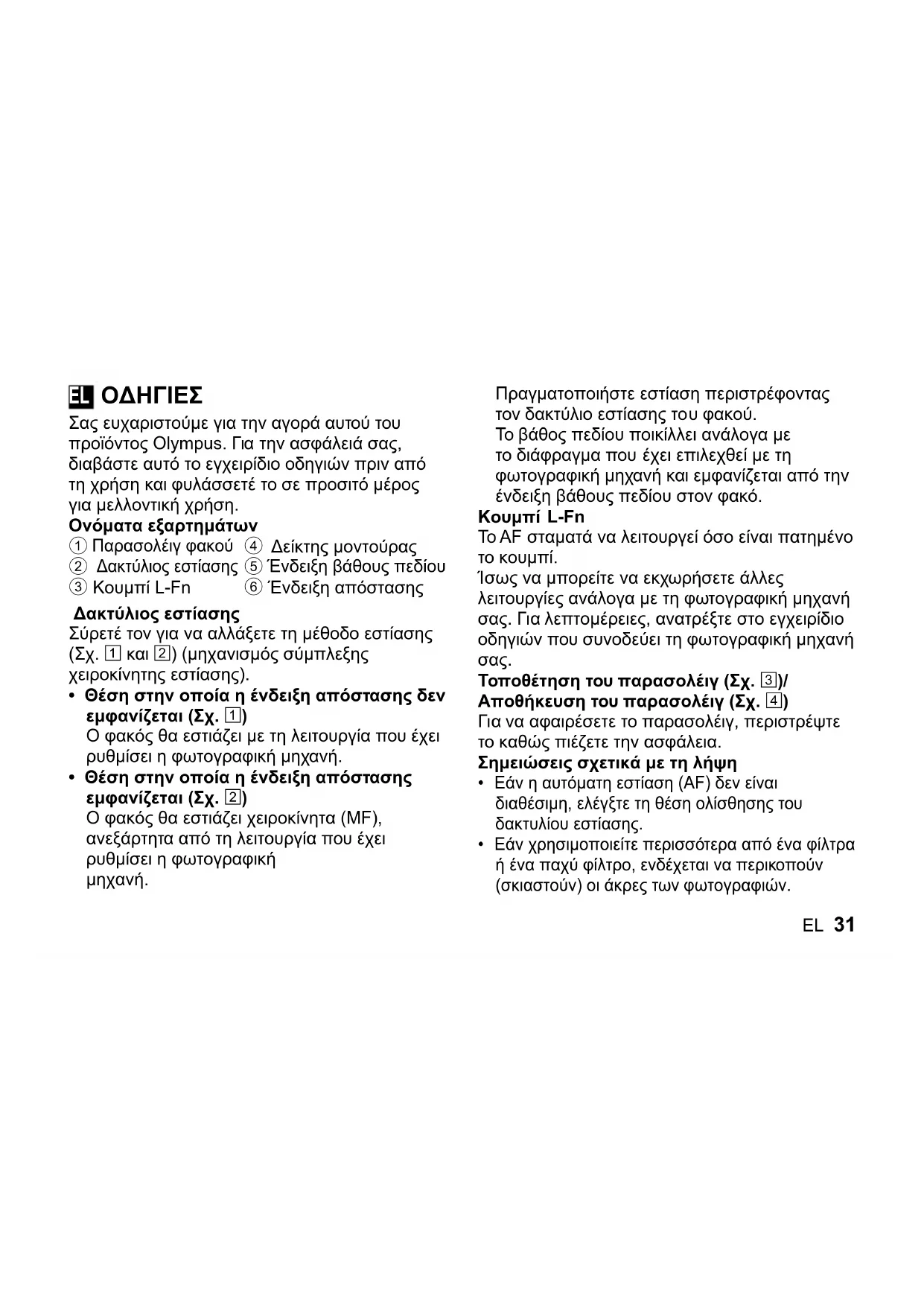 ΕΓΧΕΙΡΊΔΙΟ ΧΡΉΣΗΣ ED 45mm F1.2 PRO OLYMPUS