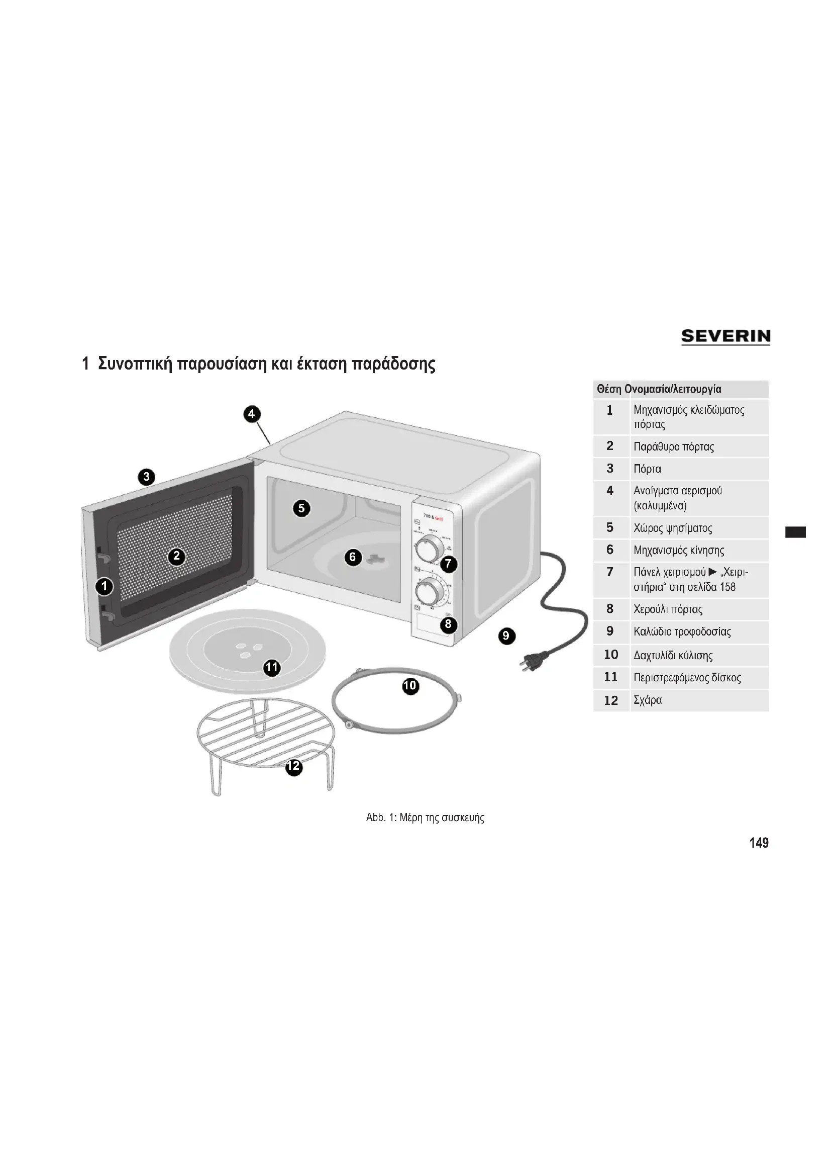 - www.severin.de ή www.severin.com. Η δική σας ομάδα της SEVERIN Πίνακας περιεχομένων 1 Συνοπτική παρουσίαση και έκταση παράδοσης p. 149
