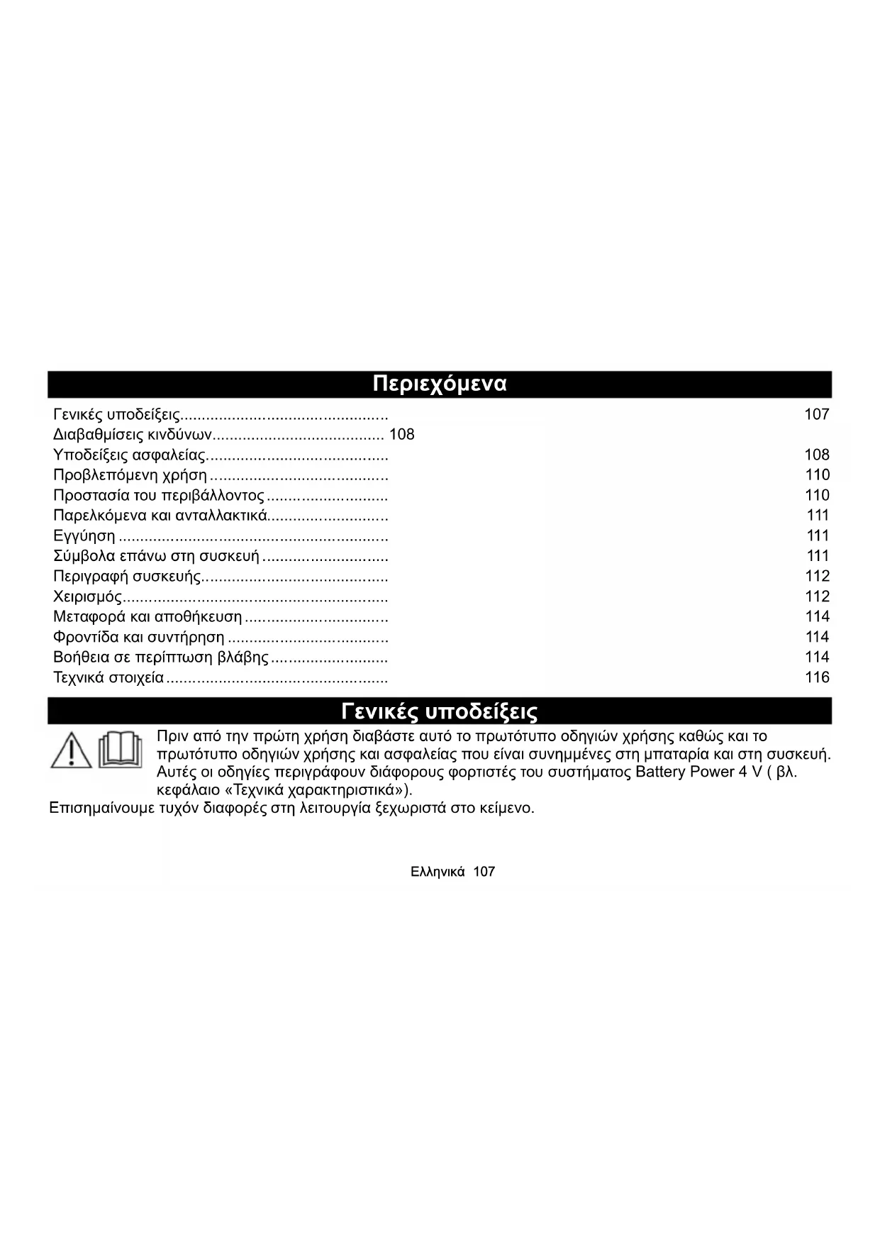 - Υποδείξεις ασφαλείας p. 108