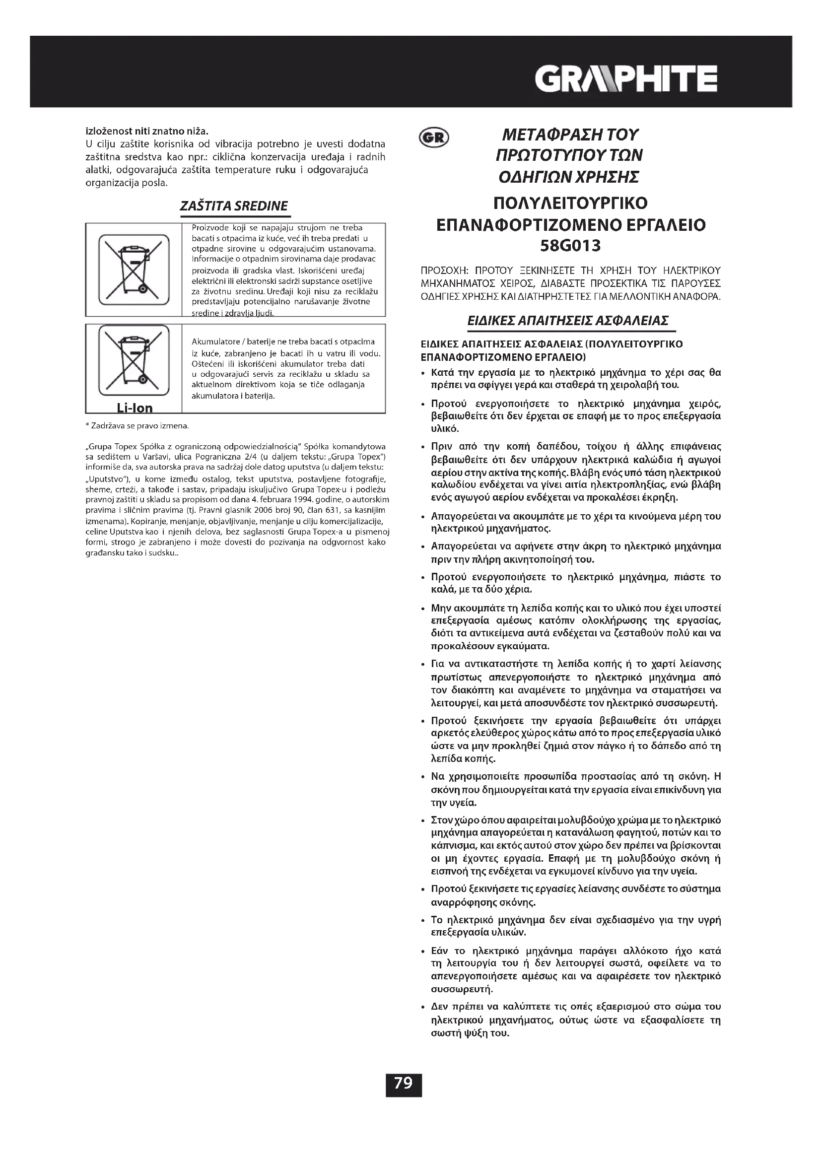 58G013 - Πολυλειτουργικά εργαλεία Graphite - Δωρεάν εγχειρίδιο χρήσης