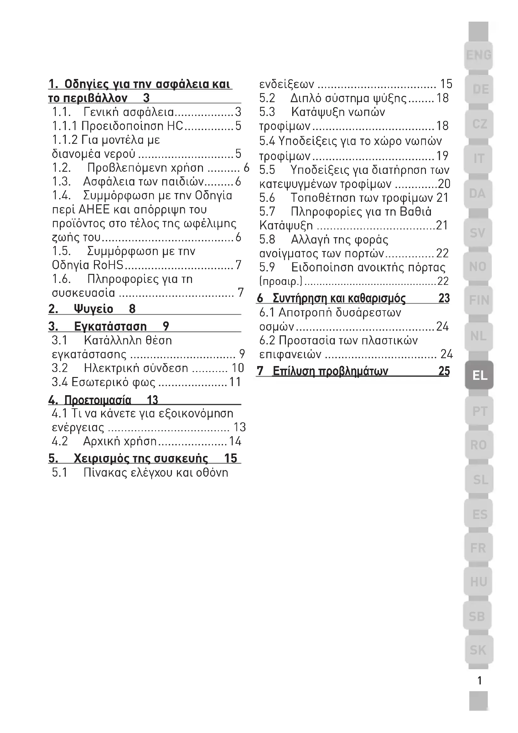 (προαιρ.) ............................................22 6 Συντήρησηκαικαθαρισμός 23 6.1Αποτροπήδυσάρεστων οσμών .......................................... 24 6.2Προστασίατωνπλαστικών επιφανειών .................................. 24 7 Επίλυσηπροβλημάτων 252