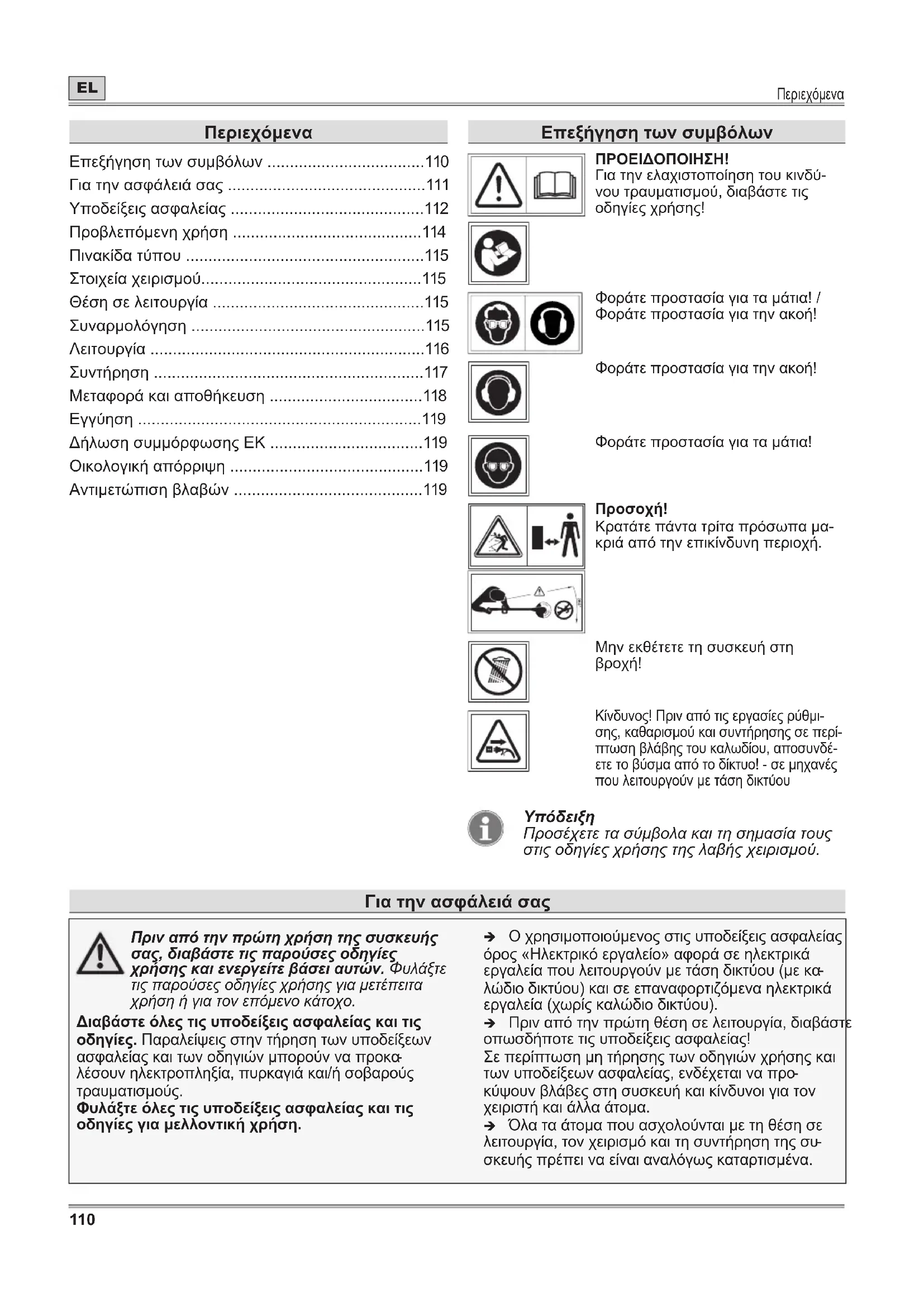 - Περιεχόμενα Επεξήγηση των συμβόλων p. 110