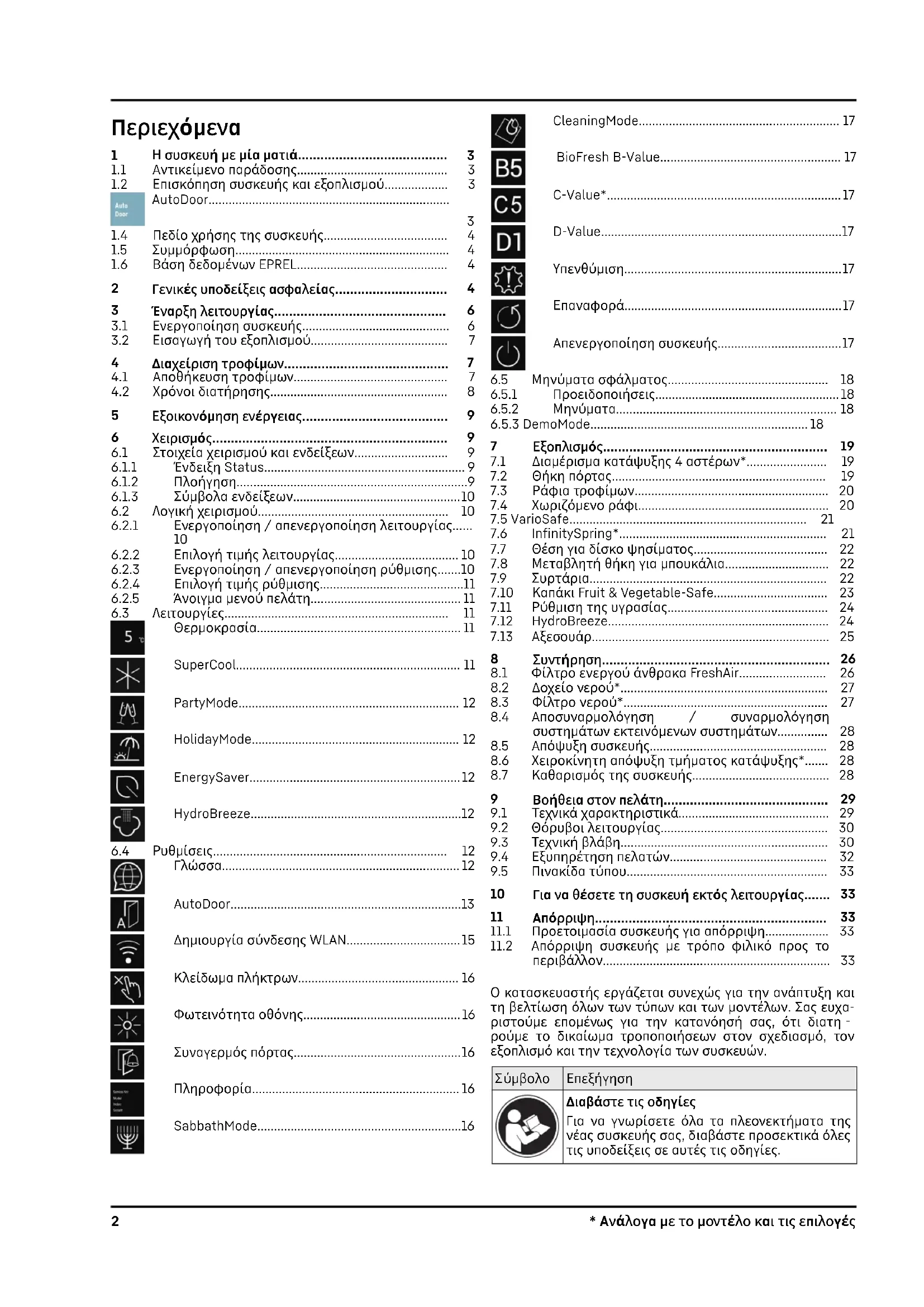 περιβάλλον.................................................................... 33 Ο κατασκευαστής εργάζεται συνεχώς για την ανάπτυξη και τη βελτίωση όλων των τύπων και των μοντέλων. Σας ευχα‐ ριστούμε επομένως για την κατανόησή σας, ότι διατη‐ ρούμε το δικαίωμα τροποποιήσεων στον σχεδιασμό, τον εξοπλισμό και την τεχνολογία των συσκευών.