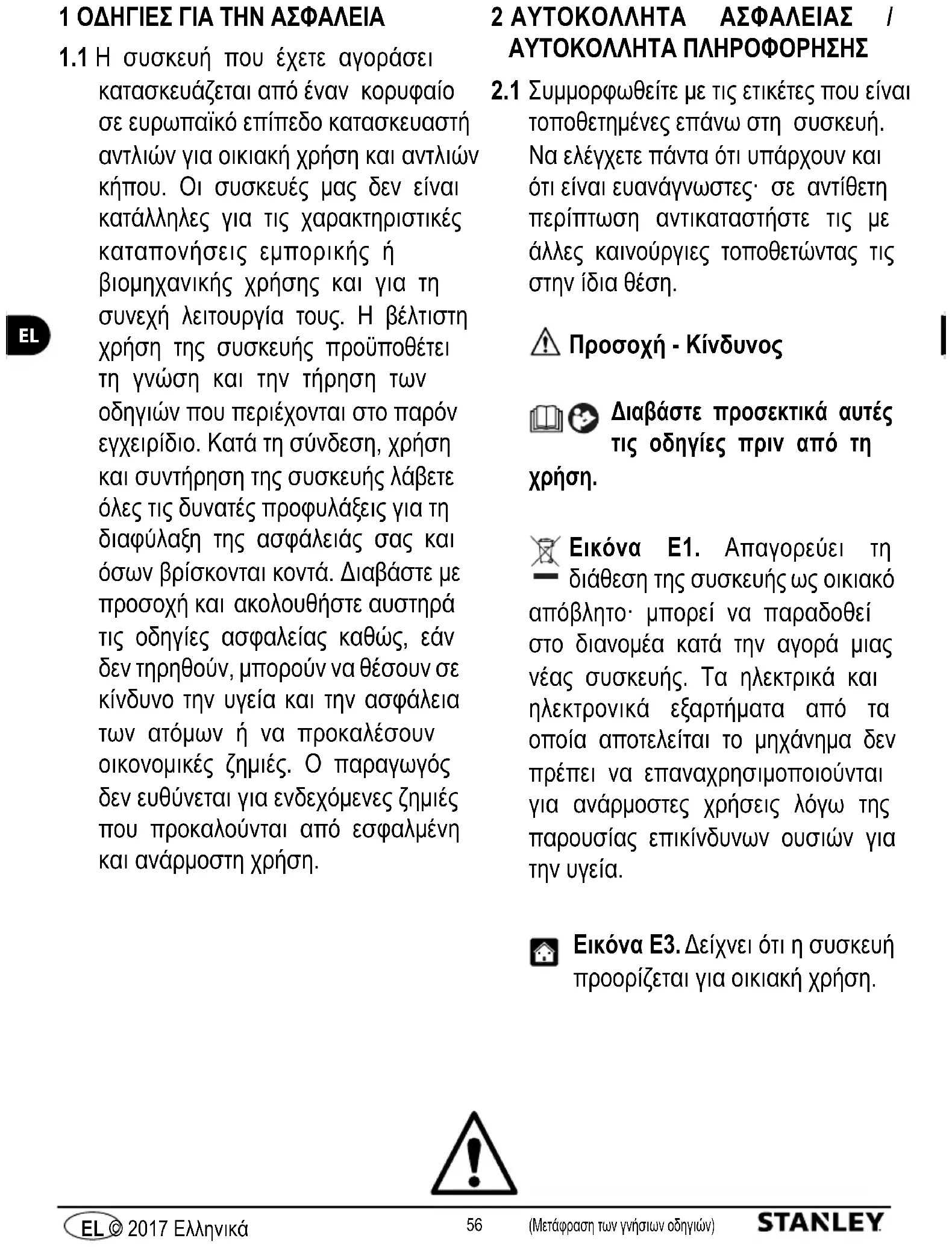 Εικόνα E3. Δείχνει ότι η συσκευή προορίζεται για οικιακή χρήση.57 (Μετάφραση των γνήσιων οδηγιών) © 2017 Ελληνικά (Μετάφραση των γνήσιων οδηγιών) EL © 2017 Ελληνικά