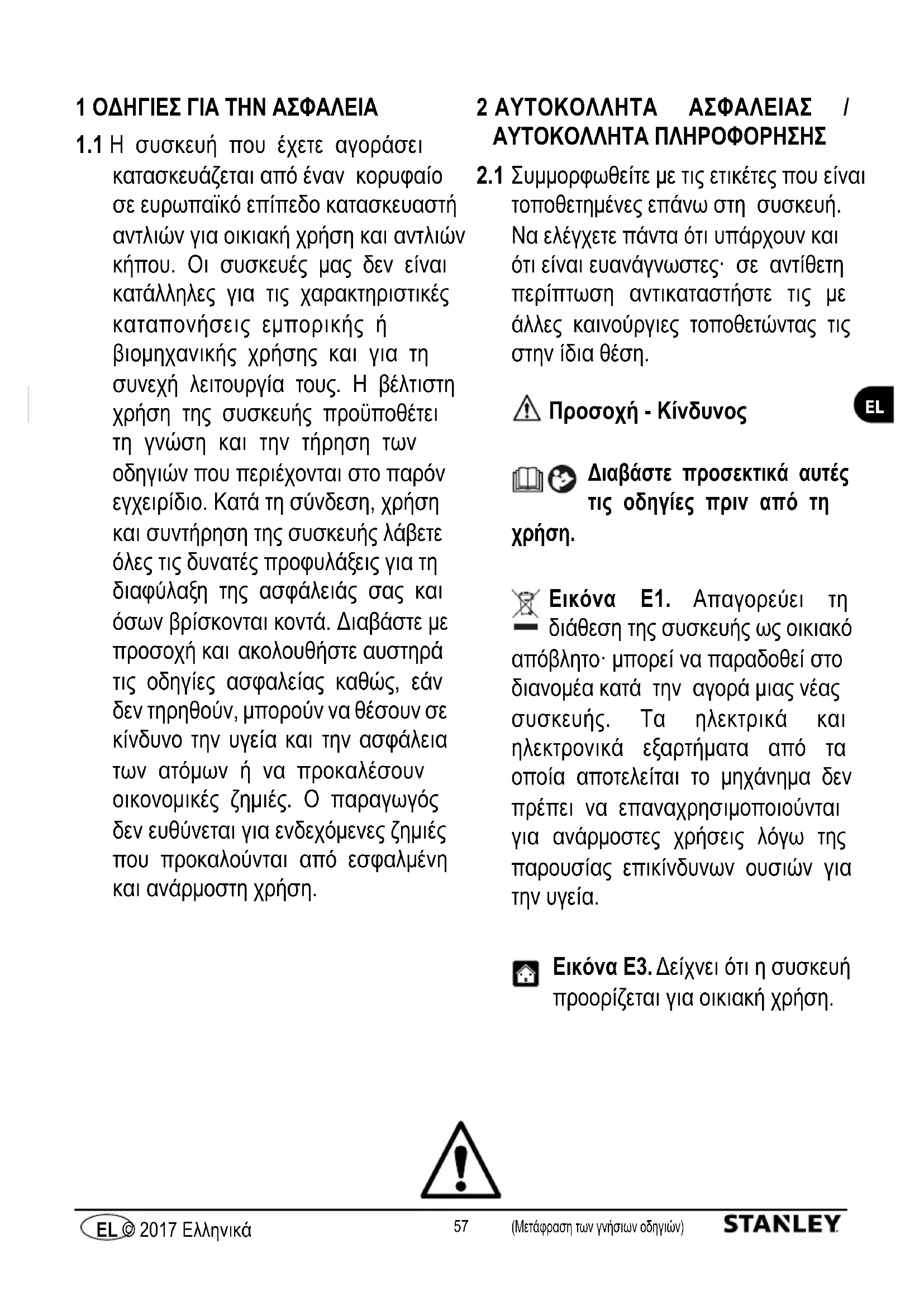 Εικόνα E3. Δείχνει ότι η συσκευή προορίζεται για οικιακή χρήση.58 (Μετάφραση των γνήσιων οδηγιών) EL © 2017 Ελληνικά (Μετάφραση των γνήσιων οδηγιών) © 2017 Ελληνικά