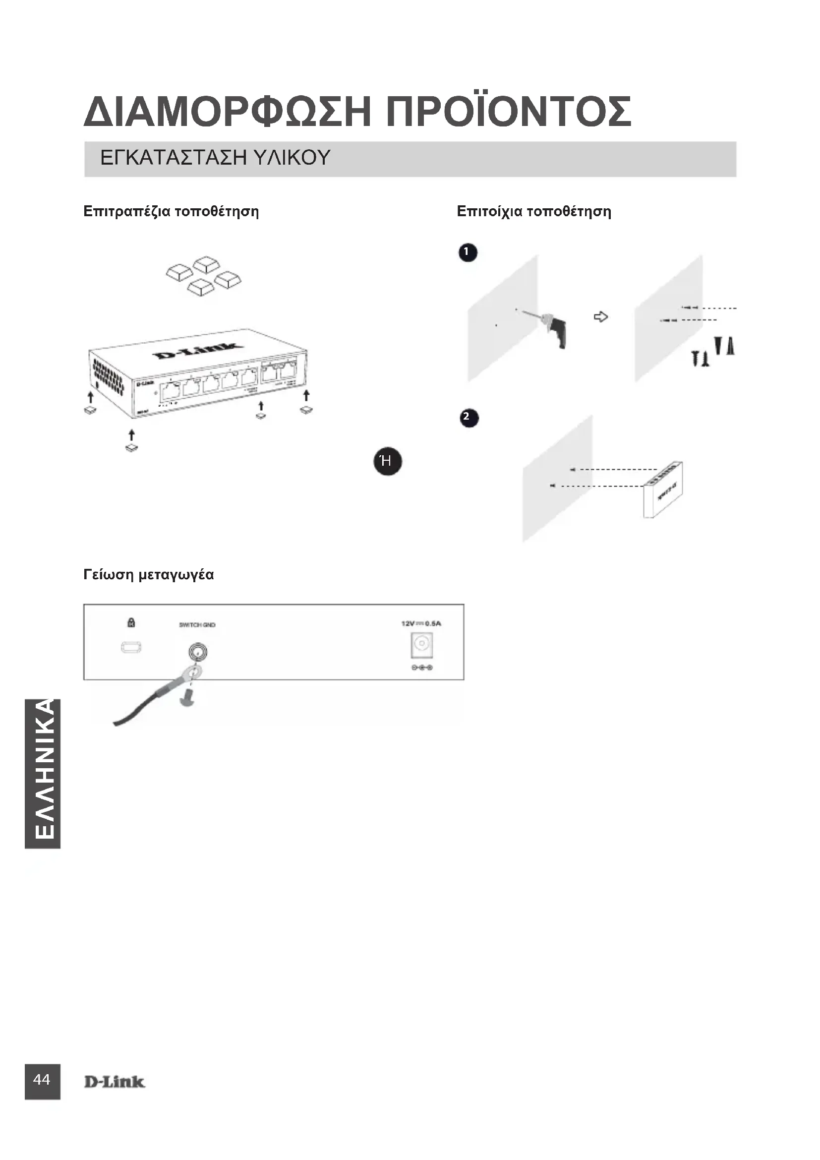 ΔΙΑΜΟΡΦΩΣΗ ΠΡΟΪΟΝΤΟΣ ΕΓΚΑΤΑΣΤΑΣΗ ΥΛΙΚΟΥ Επιτραπέζια τοποθέτηση Γείωση μεταγωγέα Επιτοίχια τοποθέτηση