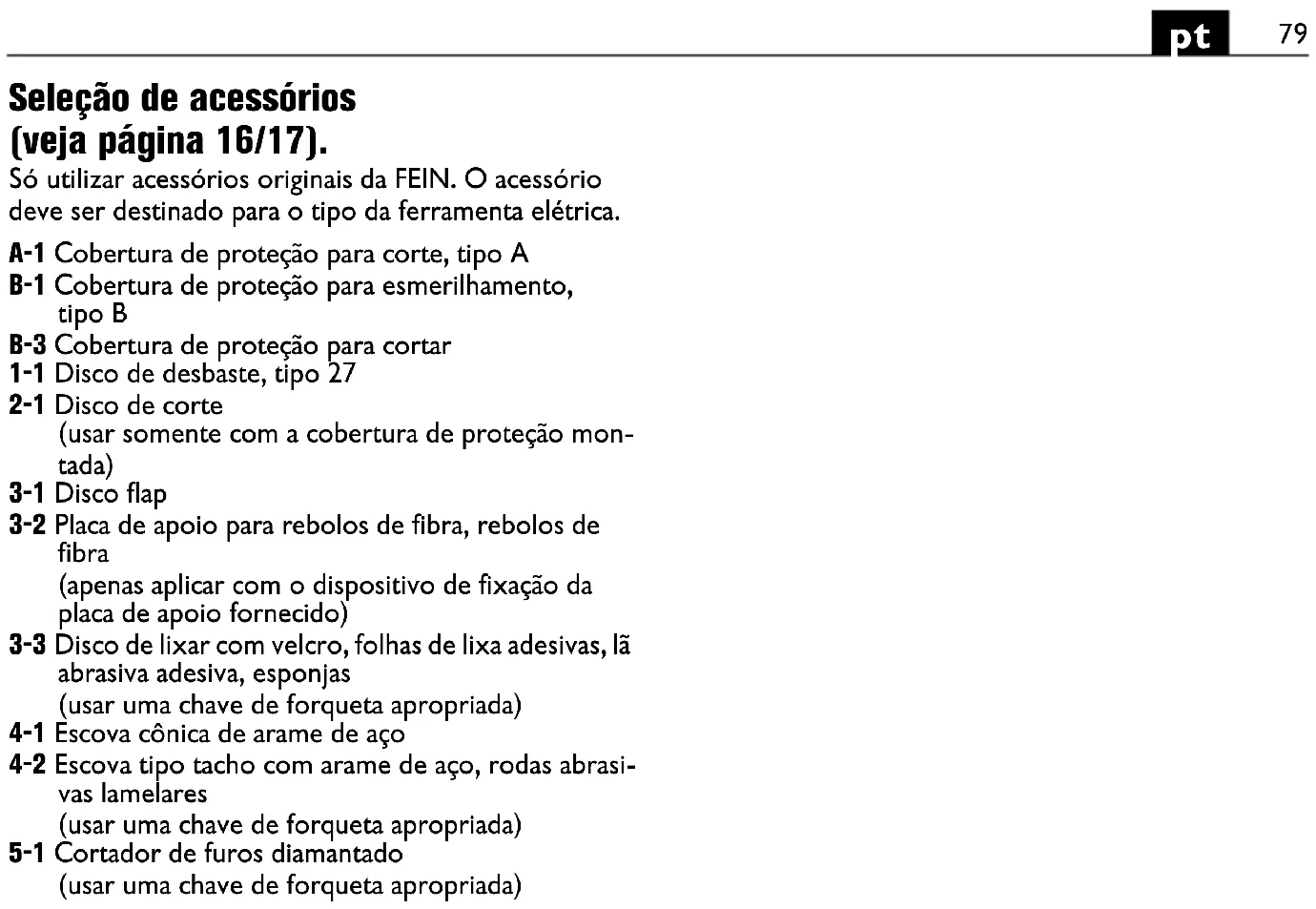 Οι συσκευασίες, τα άχρηστα ηλεκτρικά εργαλεία και τα εξαρτήματα πρέπει να ανακυκλώνονται με τρόπο φιλικό προς το περιβάλλον. Επιλογή εξαρτημάτων (βλέπε σελίδα 16/17). Χρησιμοποιείτε μόνο γνήσια εξαρτήματα από τη FEIN. Το κάθε εξάρτημα πρέπει να προορίζεται για τον αντίστοιχο τύπο ηλεκτρικού εργαλείου. A-1 Προστατευτικό καπάκι για κοπή, τύπου Α B-1 Προστατευτικό καπάκι για λείανση, τύπος B B-3 Προστατευτικό κάλυμμα για κοπή 1-1 Δίσκος ξεχονδρίσματος, τύπος 27 2-1 Δίσκος κοπής (χρήση μόνο με τοποθετημένο προστατευτικό