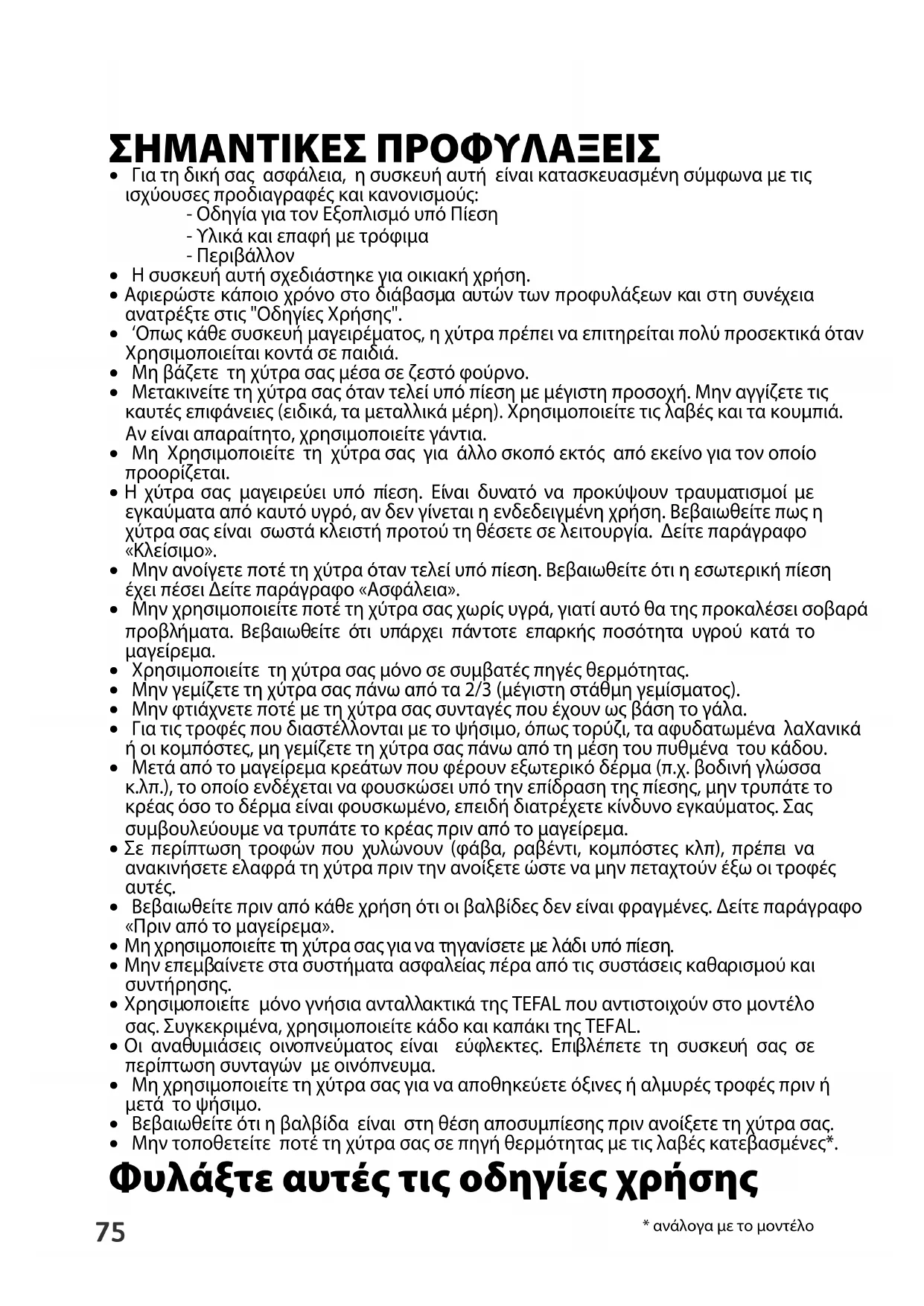 - Μην τοποθετείτε ποτέ τη χύτρα σας σε πηγή θερµότητας µε τις λαβές κατεβασµένες*. Φυλάξτε αυτές τις oδηγίες χρήσης76