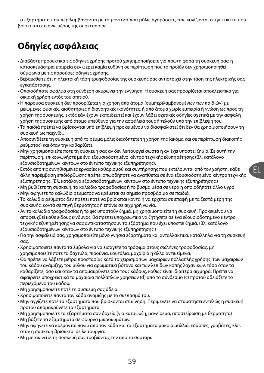• Lisez attentivement le mode d’emploi avant la première utilisation de votre appareil : une utilisation non conforme au mode d’emploi dégagerait le fabricant de toute responsabilité. • Vérifiez que la tension d’alimentation de votre appareil correspond bien à celle de votre installation électrique. • Toute erreur de branchement annule la garantie. Votre appareil est destiné à un usage domestique à l’intérieur de la maison. • Cet appareil n'est pas prévu pour être utilisé par des personnes (y compris les enfants), dont les capacités physiques, sensorielles ou mentales sont réduites, ou des personnes dénuées d'expérience ou de connaissance, sauf si elles ont pu bénéficier, par l'intermédiaire d'une personne responsable de leur sécurité, d'une surveillance ou d'instructions préalables concernant l'utilisation de l'appareil. • Il convient de surveiller les enfants pour s’assurer qu’ils ne jouent pas avec l’appareil. • Débranchez votre appareil dès que vous cessez de l’utiliser (même en cas de coupure de courant) et lorsque vous le nettoyez. • N’utilisez pas votre appareil s’il ne fonctionne pas correctement ou s’il a été endommagé. Dans ce cas, adressez-vous à un centre agréé (voir liste dans le livret service). • Toute intervention autre que le nettoyage et l’entretien usuel par le client doit être effectuée par un centre agréé (voir liste dans le livret service). • Ne mettez pas l’appareil, le câble d’alimentation ou la fiche, dans l’eau ou tout autre liquide. • Ne laissez pas pendre le câble d’alimentation à portée de mains des enfants. • Le câble d’alimentation ne doit jamais être à proximité ou en contact avec les parties chaudes de votre appareil, près d’une source de chaleur ou sur un angle vif. • Si le câble d’alimentation ou la fiche sont endommagés, n’utilisez pas l’appareil. Afin d’éviter tout danger, faites-les obligatoirement remplacer par un centre agréé (voir liste dans le livret service). • Pour votre sécurité, n’utilisez que des accessoires et des pièces détachées adaptés à votre appareil, vendu en centre agréé. • Utilisez toujours les poussoirs pour guider les aliments dans les cheminées, jamais les doigts, ni une fourchette, une cuillère, un couteau ou tout autre objet. • Des précautions doivent être prises lors de la manipulation du couteau multifonction, du couteau du bol mixer, moulin fines-herbes et des cartouches coupe-légumes, lorsque vous les nettoyez et lorsque vous videz les bols, ils sont extrêmement tranchants. Vous devez obligatoirement retirer le couteau multifonction (d) par son entraîneur (c) avant de vider le bol de son contenu. • N’utilisez pas votre appareil à vide. • Utilisez toujours votre bol mixer avec son couvercle. • Ne touchez jamais les pièces en mouvement, attendez l’arrêt complet avant d’enlever les accessoires. • N’utilisez pas les accessoires comme récipient (congélation – cuisson – stérilisation à chaud). • Ne passez pas les accessoires dans un four à micro-ondes. • Ne laissez pas pendre les cheveux longs, les écharpes, les cravates, etc… au dessus du bol et des accessoires en fonctionnement. • Ne déplacez pas votre appareil en le tenant par le tiroir.