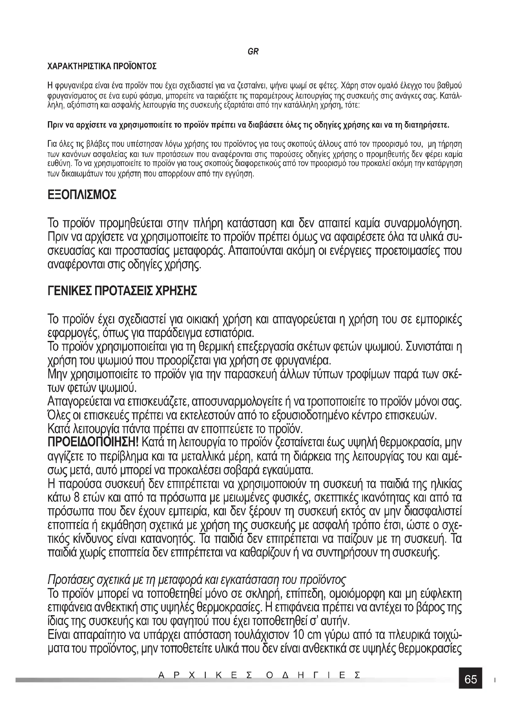 του προϊόντος, μην τοποθετείτε υλικά που δεν είναι ανθεκτικά σε υψηλές θερμοκρασίες66 ΑΡΧΙΚΕΣ ΟΔΗΓΙΕΣ
