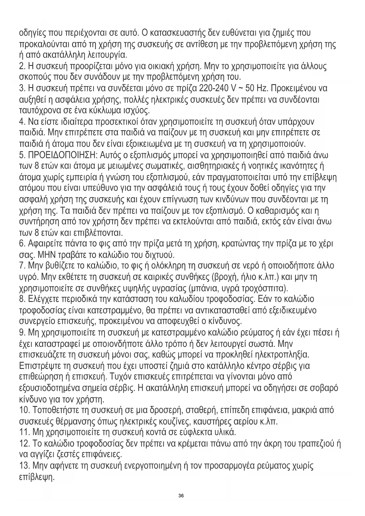 3. Η συσκευή πρέπει να συνδέεται μόνο σε πρίζα 220-240 V ~ 50 Hz. Προκειμένου να