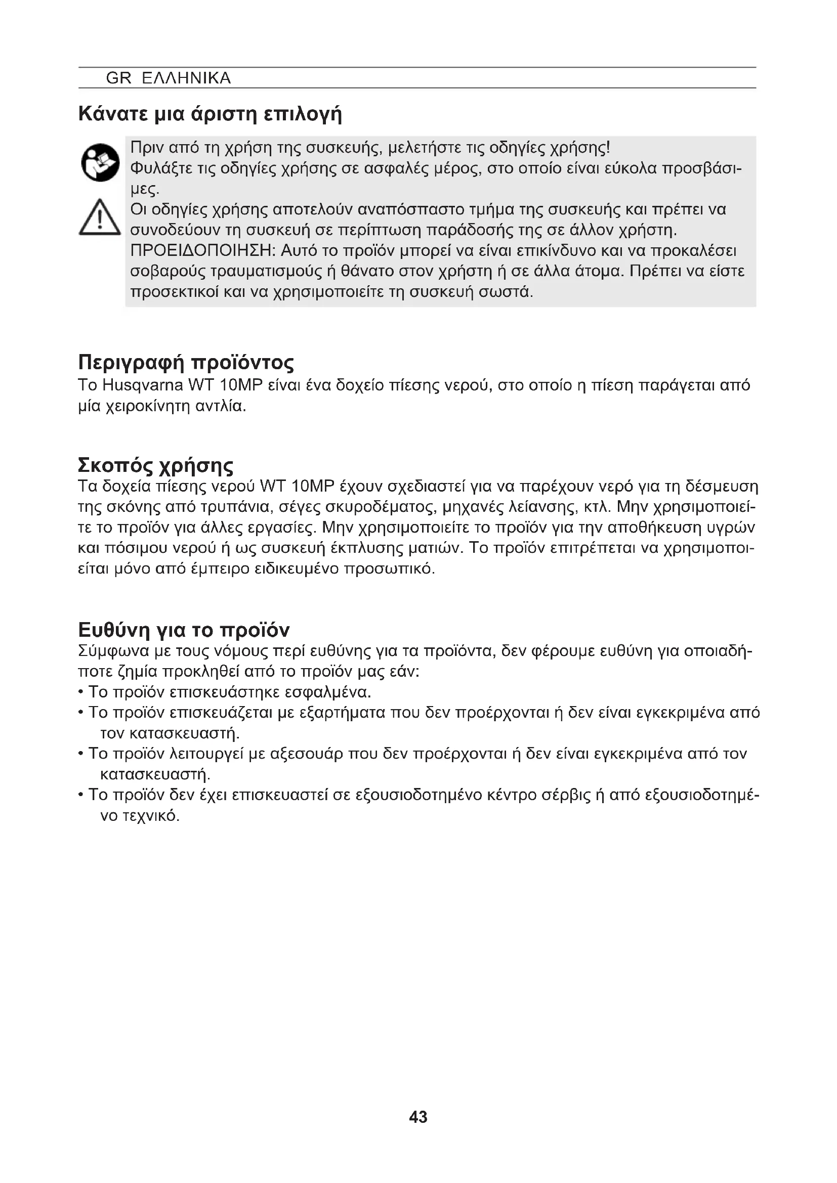 WT 10MP - μη κατηγοριοποιημένο HUSQVARNA - Δωρεάν εγχειρίδιο χρήσης