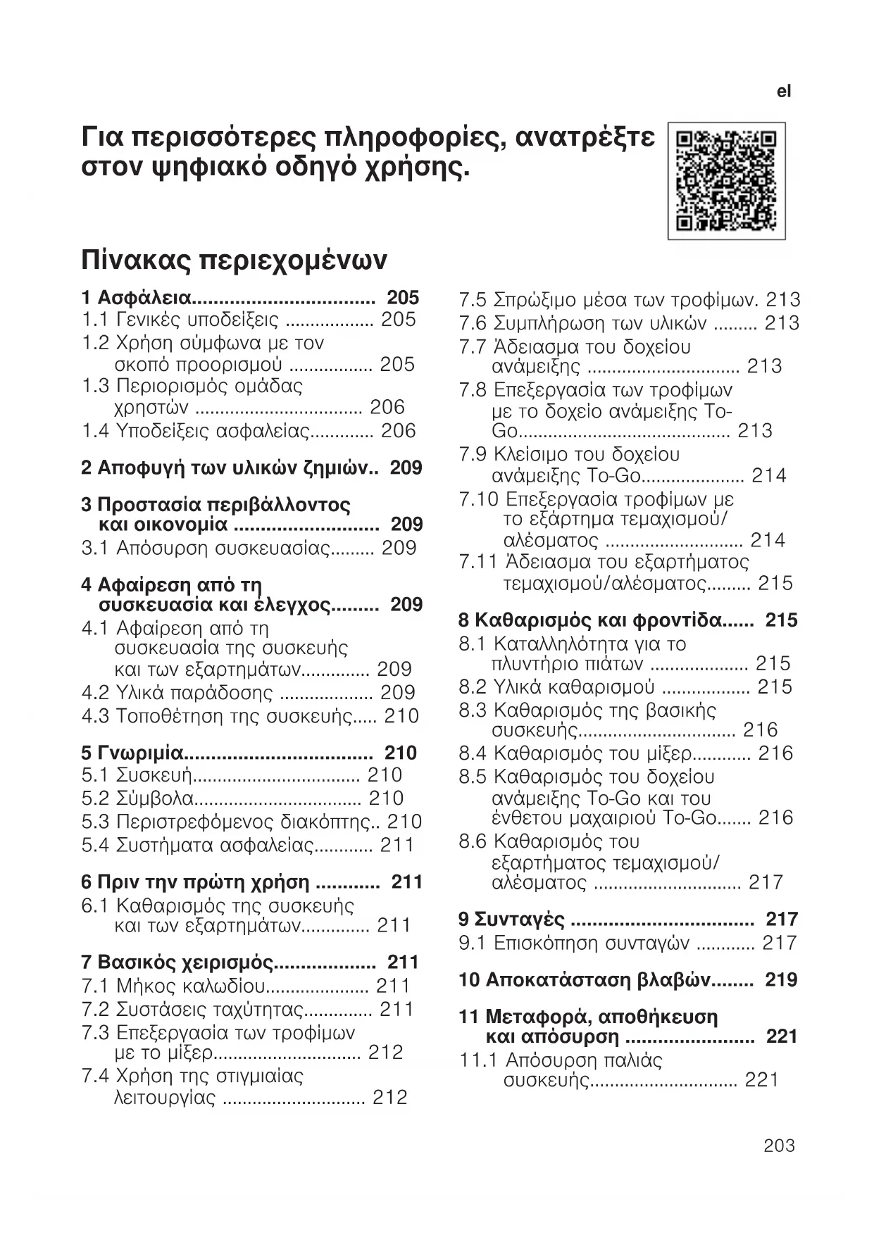 τεμαχισμού/αλέσματος.........215 8 Καθαρισμός και φροντίδα......215