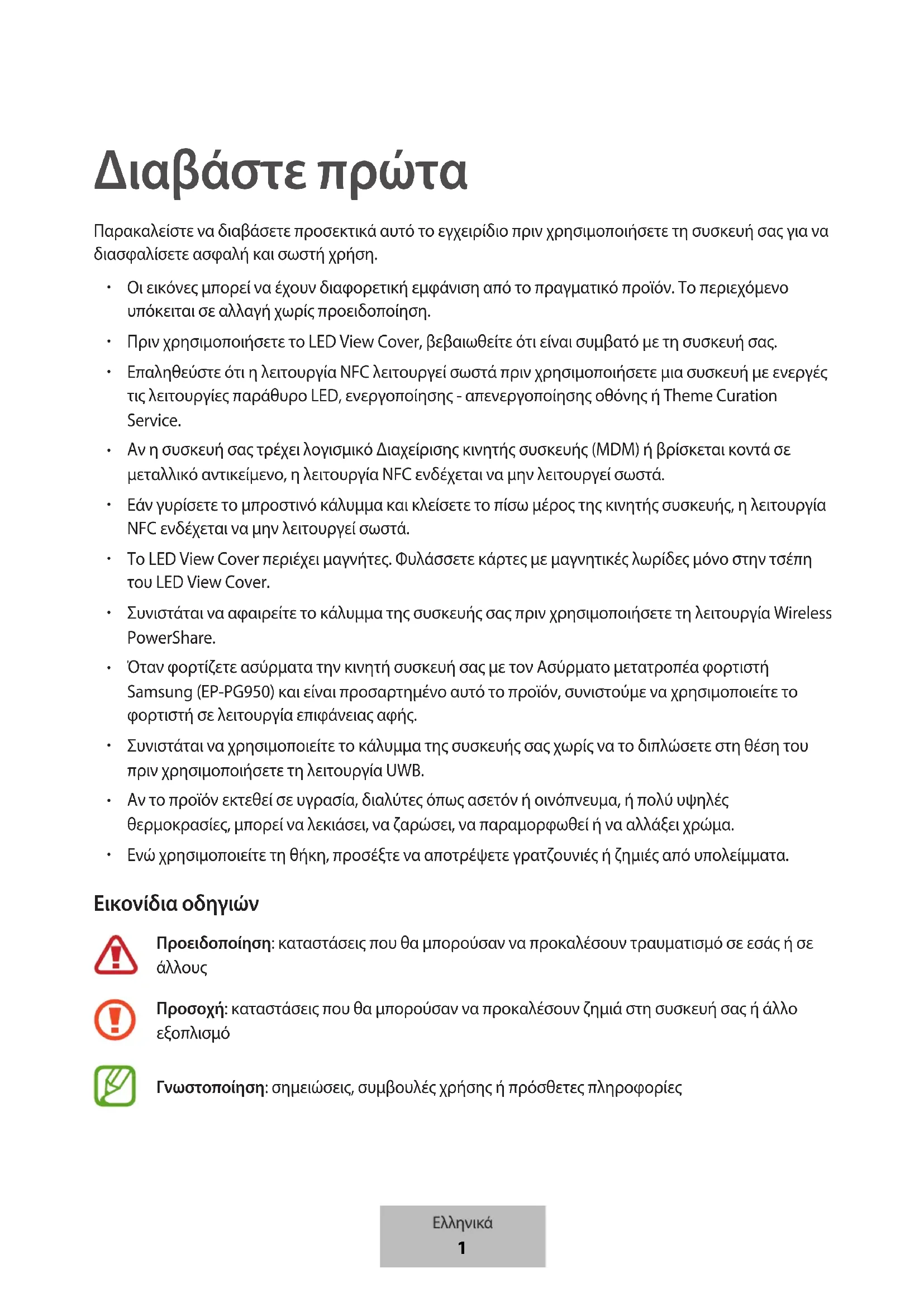 Διαβάστε πρώτα Παρακαλείστε να διαβάσετε προσεκτικά αυτό το εγχειρίδιο πριν χρησιμοποιήσετε τη συσκευή σας για να διασφαλίσετε ασφαλή και σωστή χρήση.