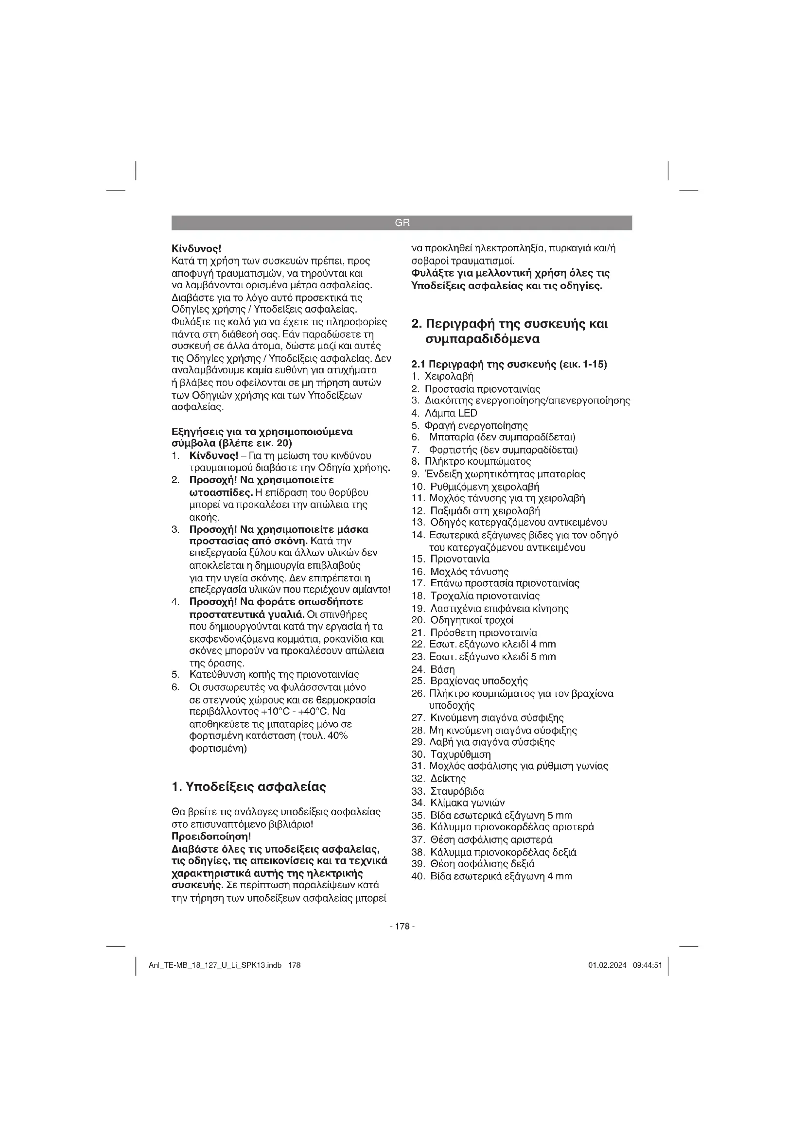 Τροποποιήσεις στη μηχανή αποκλείουν την ευθύνη του κατασκευαστή από τις ζημιές που προκύπτουν από τη χρήση αυτή. Παρ΄όλη την ενδεδειγμένη χρήση δεν μπορούν να αποκλειστούν τελείως ορισμένοι κίνδυνοι. Εξαιτίας της κατασκευής και της δομής της μηχανής δεν αποκλείονται οι εξής κίνδυνοι: Anl_TE-MB_18_127_U_Li_SPK13.indb 179Anl_TE-MB_18_127_U_Li_SPK13.indb 179 01.02.2024 09:44:5101.02.2024 09:44:51GR