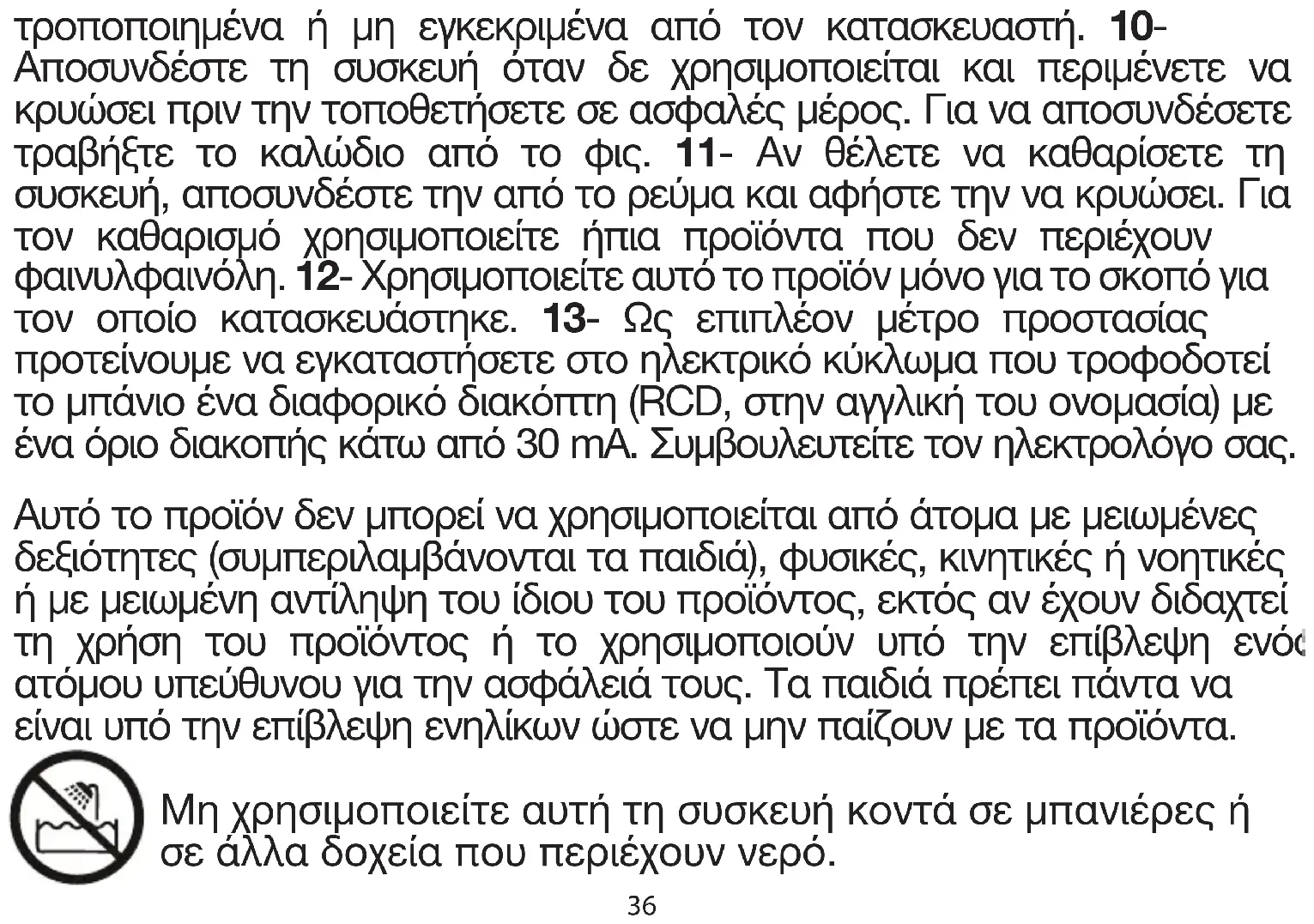 1- Μη χρησιμοποιείτε τη συσκευή με βρεγμένα χέρια, σε υγρούς χώρους ή