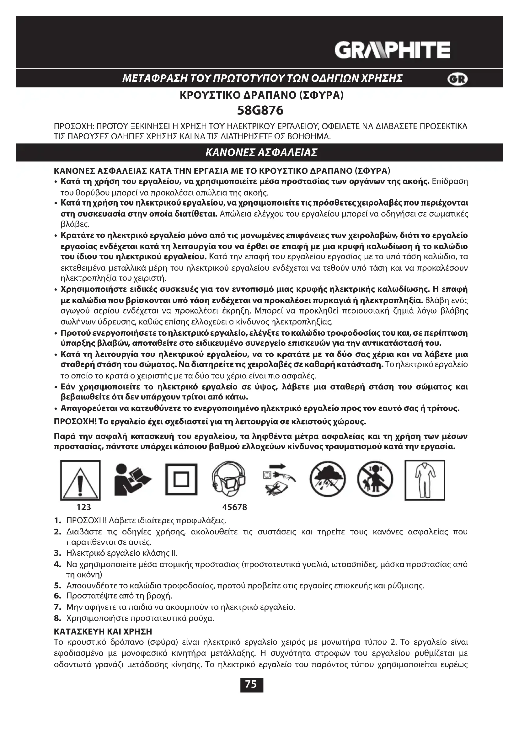 58G876 - τρυπάνι Graphite - Δωρεάν εγχειρίδιο χρήσης