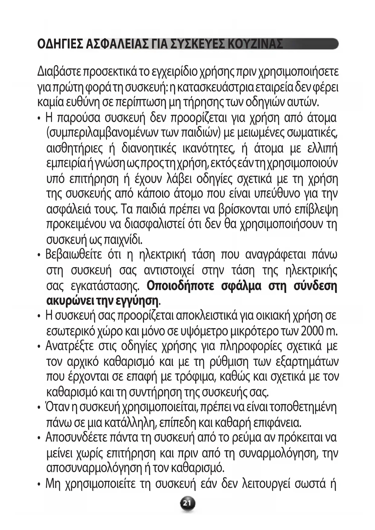 - Μη χρησιμοποιείτε τη συσκευή εάν δεν λειτουργεί σωστά ή ΟΔΗΓΙΕΣ ΑΣΦΑΛΕΙΑΣ ΓΙΑ ΣΥΣΚΕΥΕΣ ΚΟΥΖΙΝΑΣ22