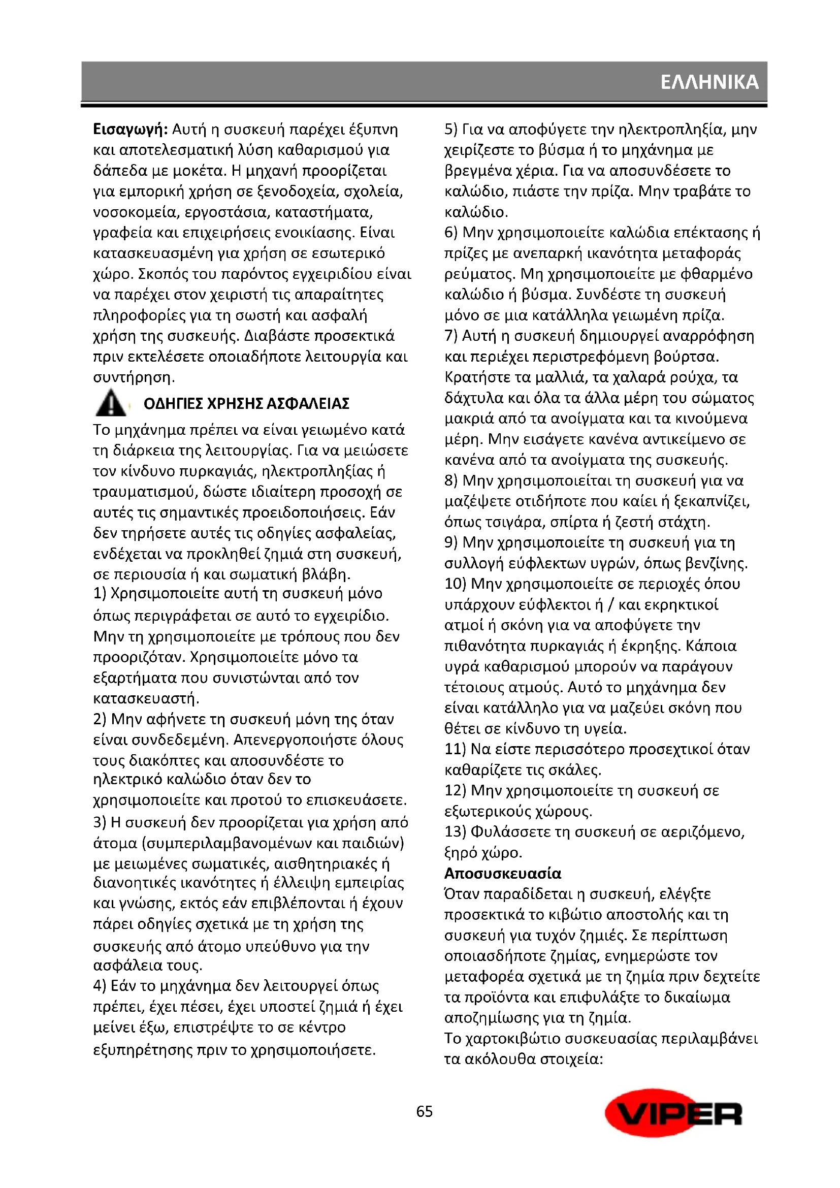 CEX410 - Ηλεκτρική σκούπα Viper - Δωρεάν εγχειρίδιο χρήσης