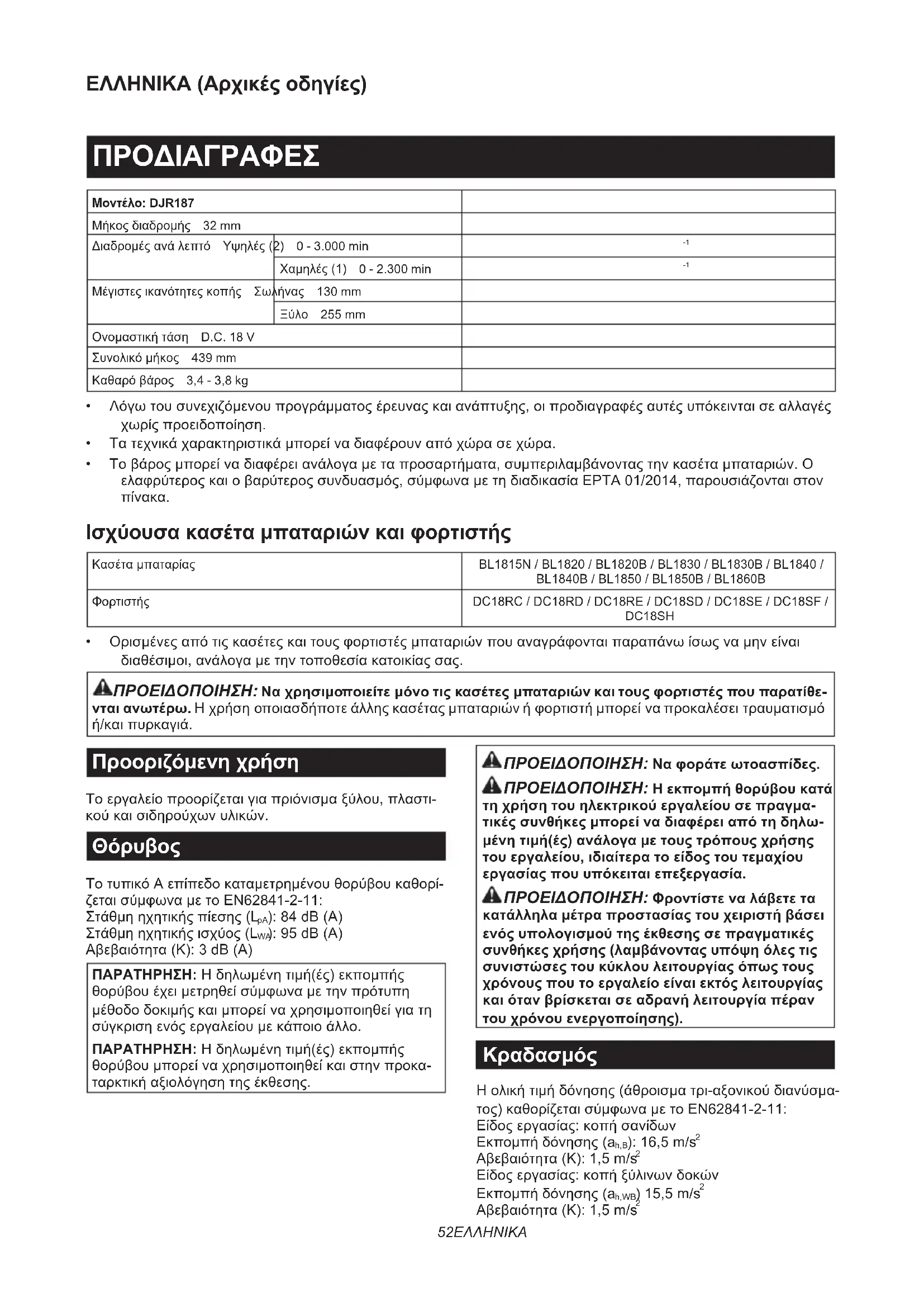 ΕΓΧΕΙΡΊΔΙΟ ΧΡΉΣΗΣ DJR187ZK MAKITA
