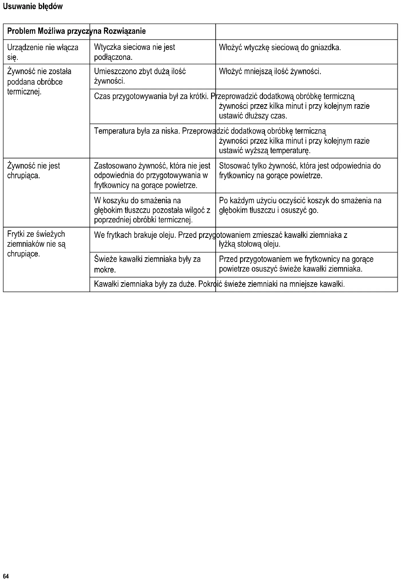 Καθαρίστε και στεγνώστε το καλάθι τηγανίσματος μετά από κάθε χρήση. Οι φρέσκες τηγανιτές πατάτες δεν γίνονται