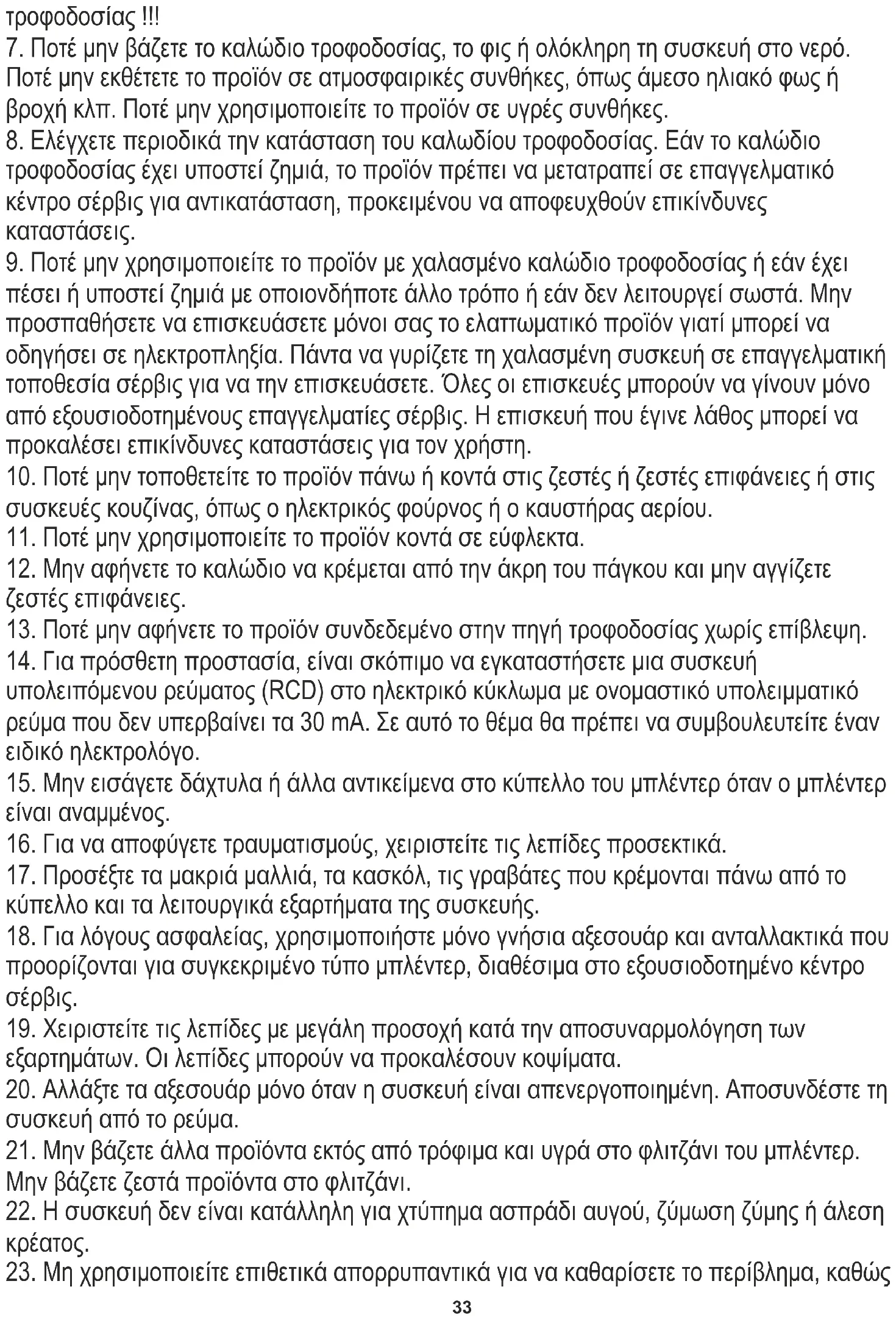 21. Μην βάζετε άλλα προϊόντα εκτός από τρόφιμα και υγρά στο φλιτζάνι του μπλέντερ.