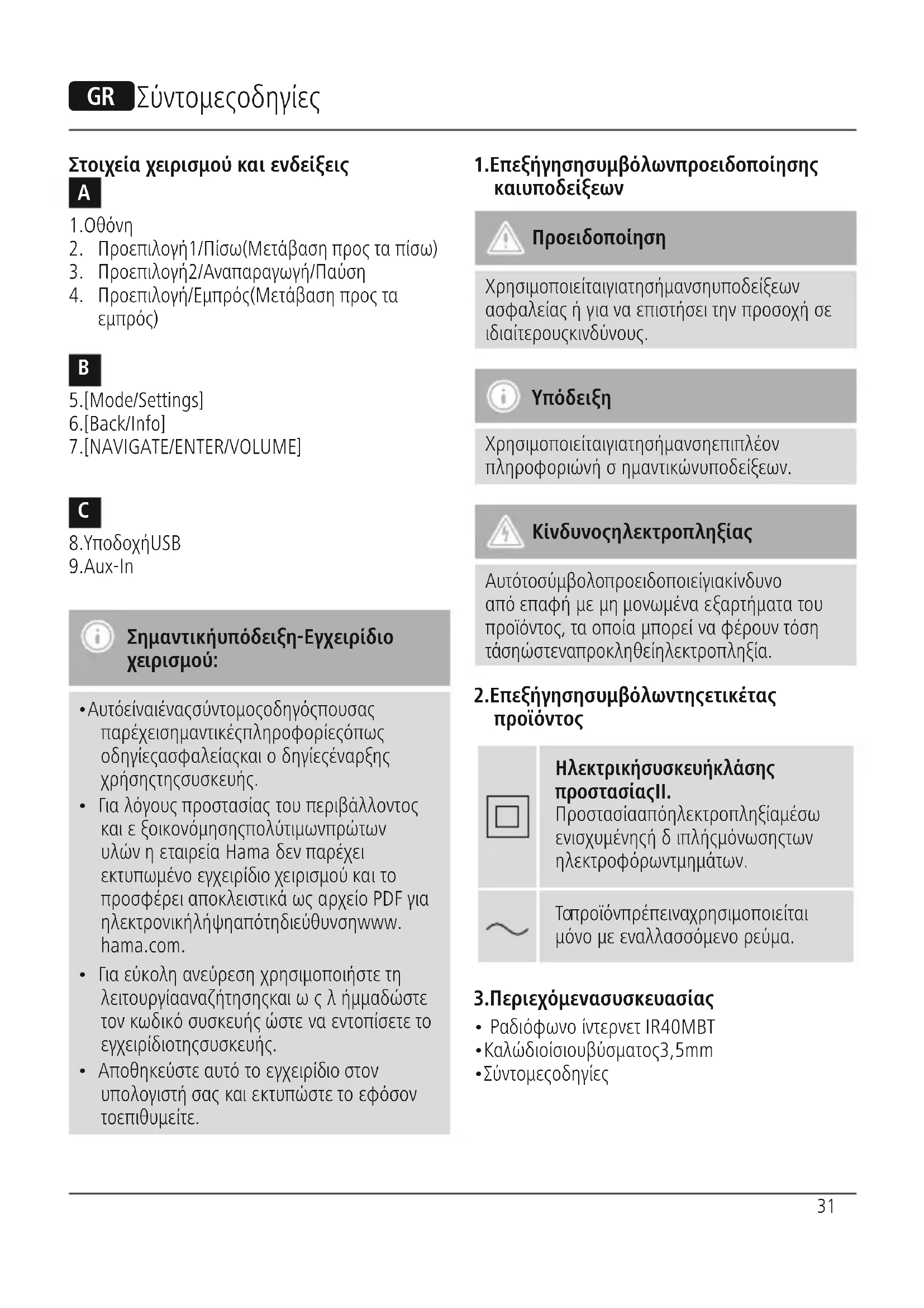 - Γιαλόγους προστασίας τουπεριβάλλοντος καιεξοικονόμησης πολύτιμων πρώτων υλών ηεταιρεία Hama δεν παρέχει εκτυπωμένοεγχειρίδιο χειρισμού καιτο προσφέρει αποκλειστικάωςαρχείο PDF για ηλεκτρονική λήψη από τη διεύθυνση www. hama.com.