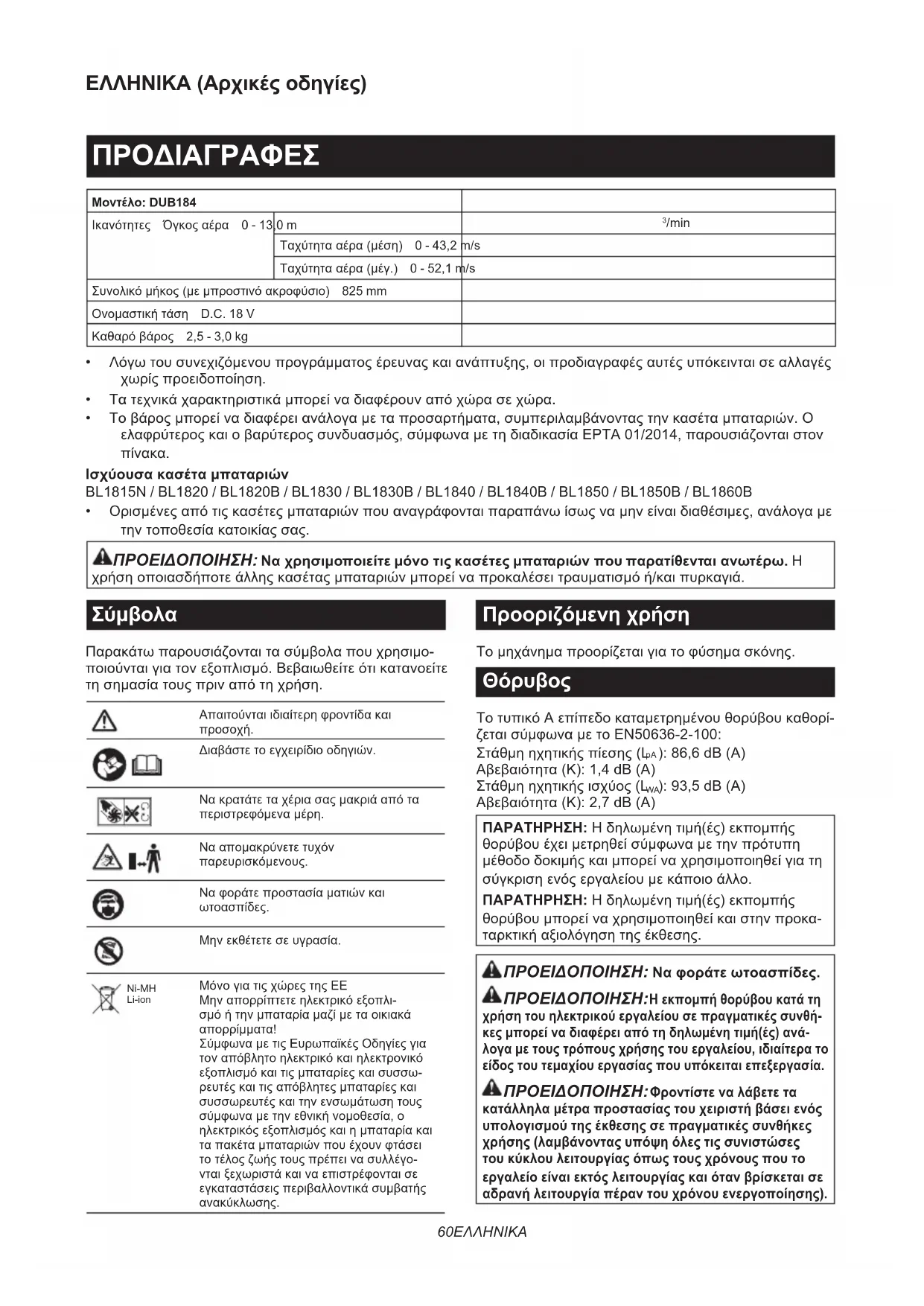 DUB184RF - φυσητήρας φύλλων MAKITA - Δωρεάν εγχειρίδιο χρήσης