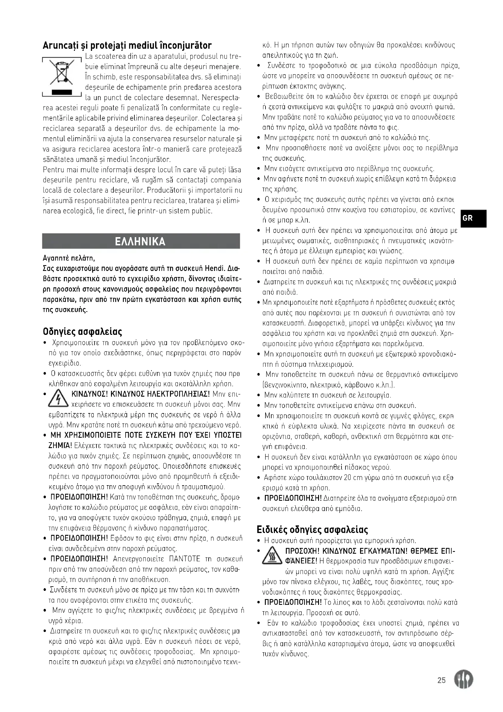 - ΠΡΟΕΙΔΟΠΟΊΗΣΗ! Διατηρείτε όλα τα ανοίγματα εξαερισμού στη συσκευή ελεύθερα από εμπόδια. Ειδικές οδηγίες ασφαλείας